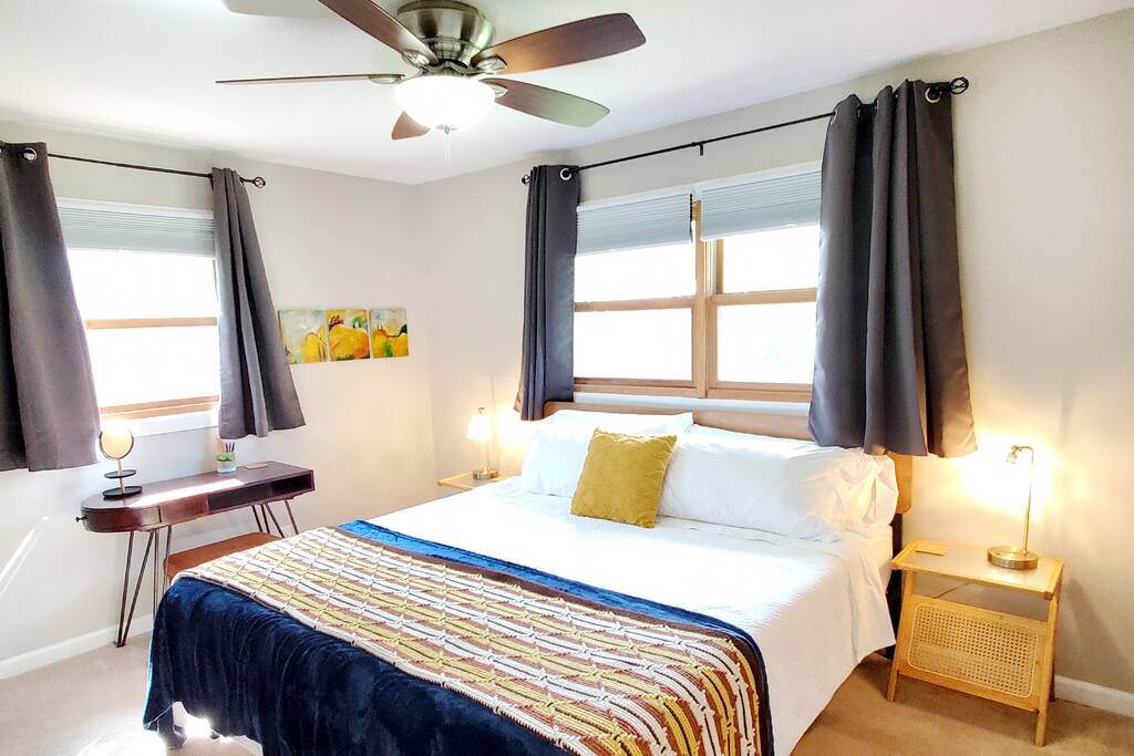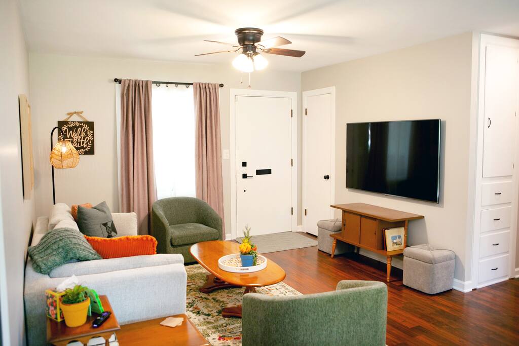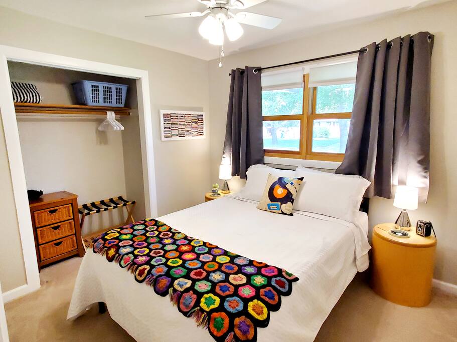 Step into our family-friendly, vintage style home — a warm and welcoming space with plenty of room for everyone! Upon entering, you’re greeted by a cozy living area featuring a large smart TV, perfect for relaxing after a long day. Continue into the open-concept dining and kitchen area, where the spacious layout encourages family fun and easy conversation. Just off the kitchen, you’ll find a converted garage space complete with a second TV, simple at-home workout equipment, and laundry facilities for added convenience. On the other side of the home, you’ll discover comfortable bedrooms and bathrooms, offering a peaceful retreat. Here's why you'll love it! KITCHEN - Stainless steel appliances - Blender - Hot water kettle - Drip coffee pot - Toaster - Island seating (3) + Dining table (6) BEDROOM 1 - Queen mattress - Closet - Ceiling fan BEDROOM 2 - Queen mattress - Closet - Ceiling fan BEDROOM 3 - King mattress - Closet - Ceiling fan - Dedicated workspace ENSUITE BATHROOM - Walk in shower - Hand soap - Shampoo, conditioner, & body wash - Plush towels - Hair dryer HALL BATHROOM - Shower/Tub combo - Hand soap - Shampoo, conditioner, & body wash - Plush towels - Hair dryer GARAGE - Laundry facilities - Dumbbells - Yoga ball - Yoga mats - TV BACKYARD -Outdoor dining table - Fully fenced We strive to provide our guests with a memorable stay, and we hope you will enjoy the comfort and convenience of our home during your visit! PLEASE NOTE: -Please sign into your streaming services and enjoy! We do not offer cable. -Guests are not allowed to make a reservation in their city of residence. Guests with a 316 area phone number will be required to submit their drivers license upon approval. If there is a local address on the drivers license, the booking will be cancelled. No exceptions. -We only accept bookings from individuals aged 25 and older. Bookings made by anyone under the age of 25 will not be accepted. We can't wait to host you!