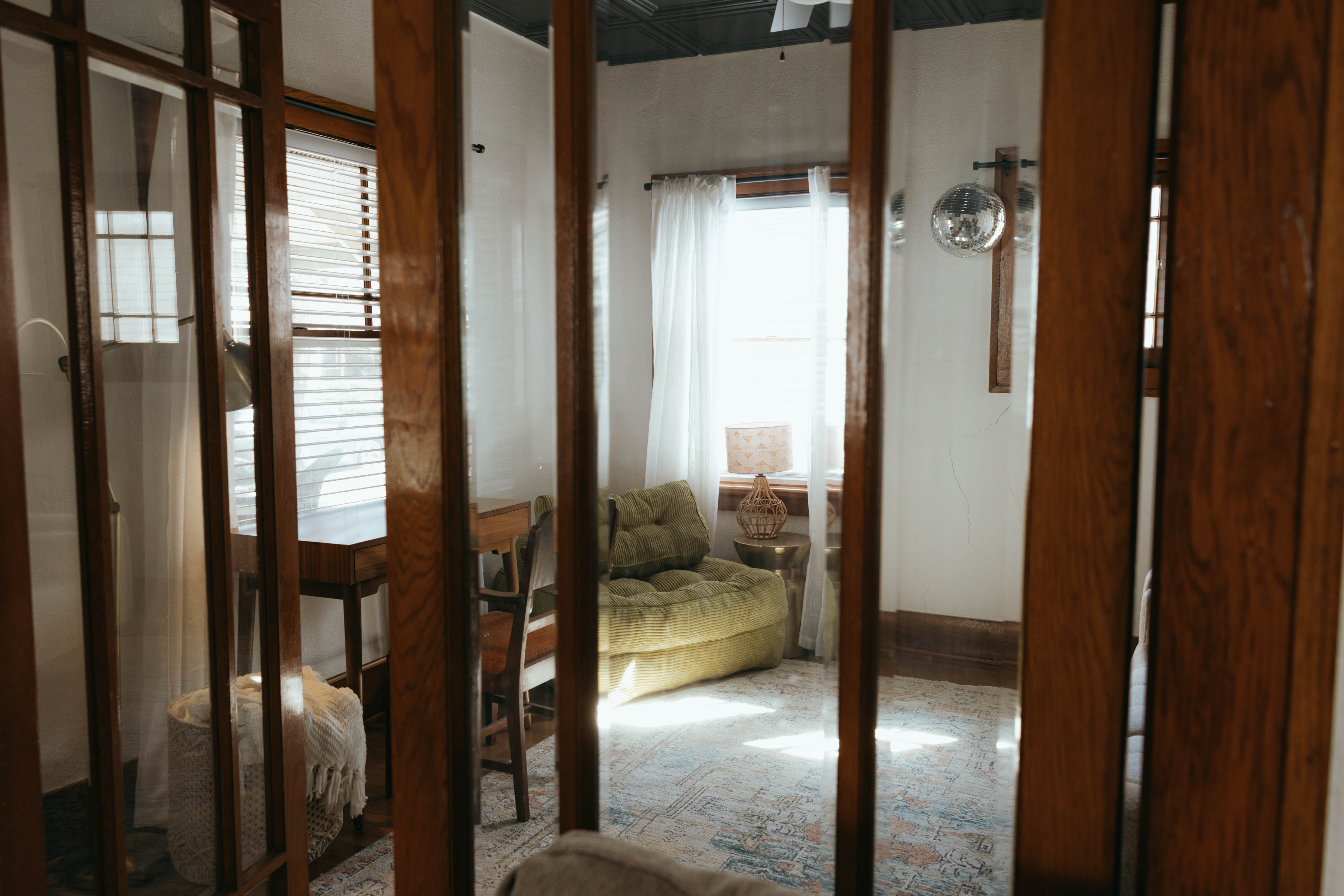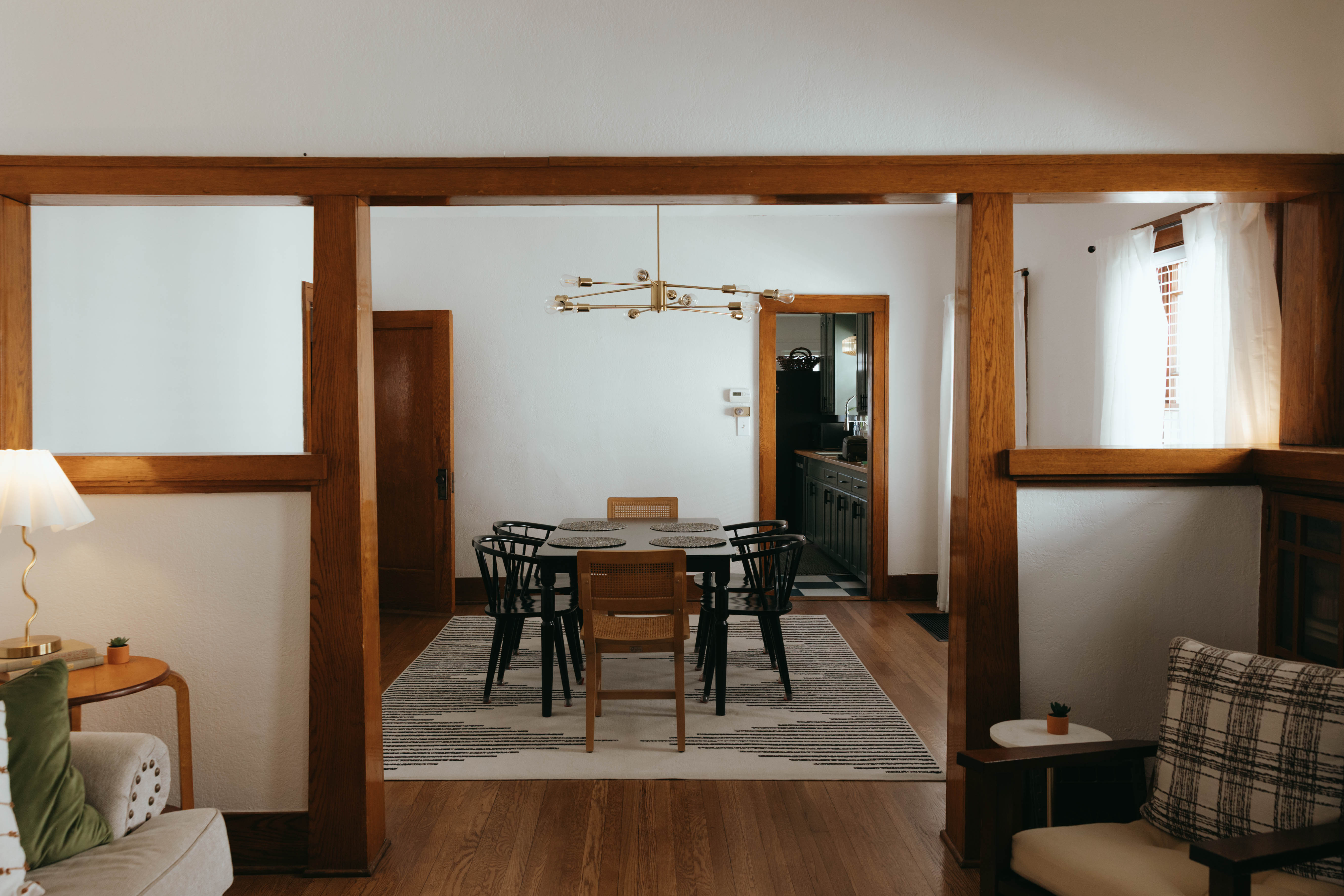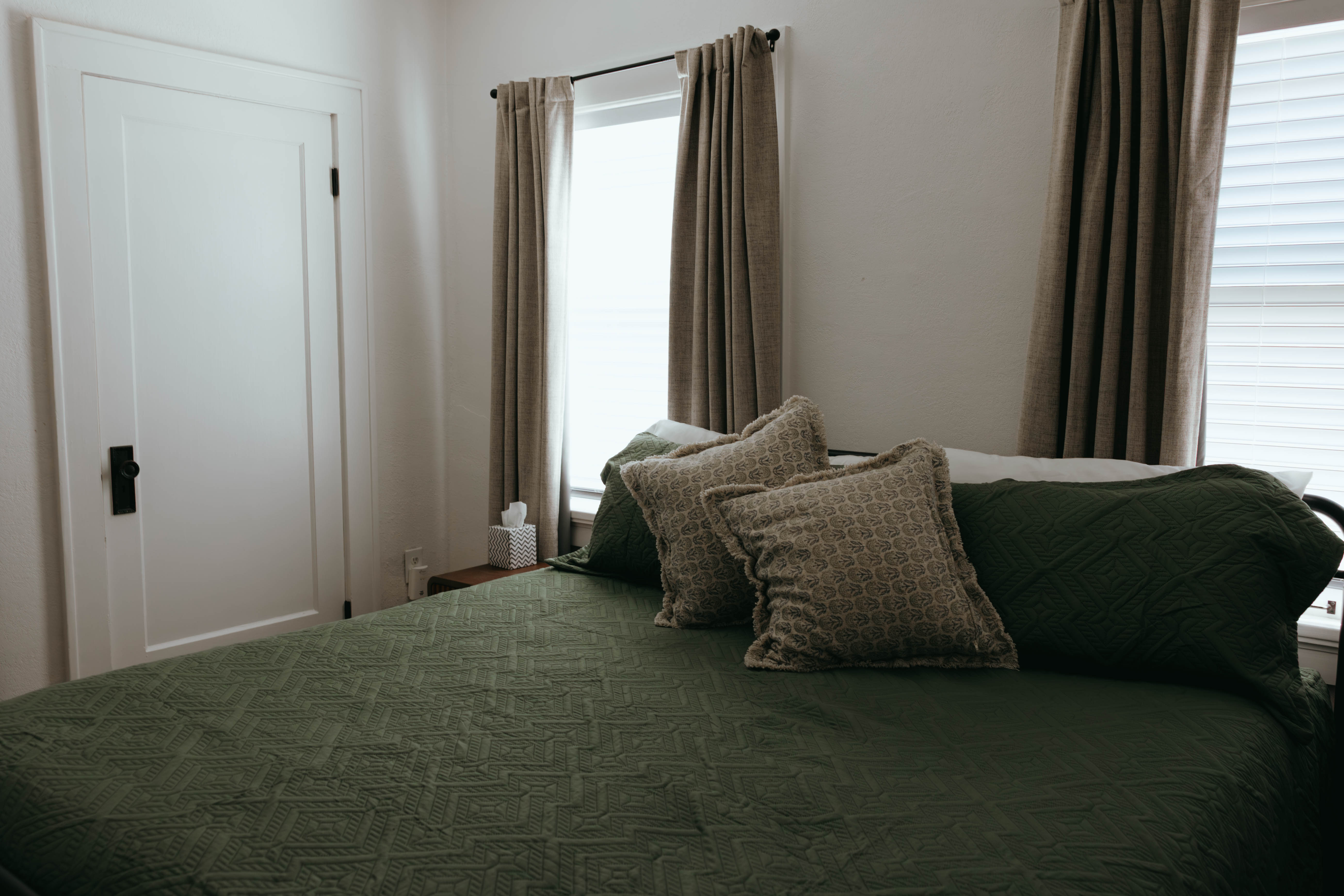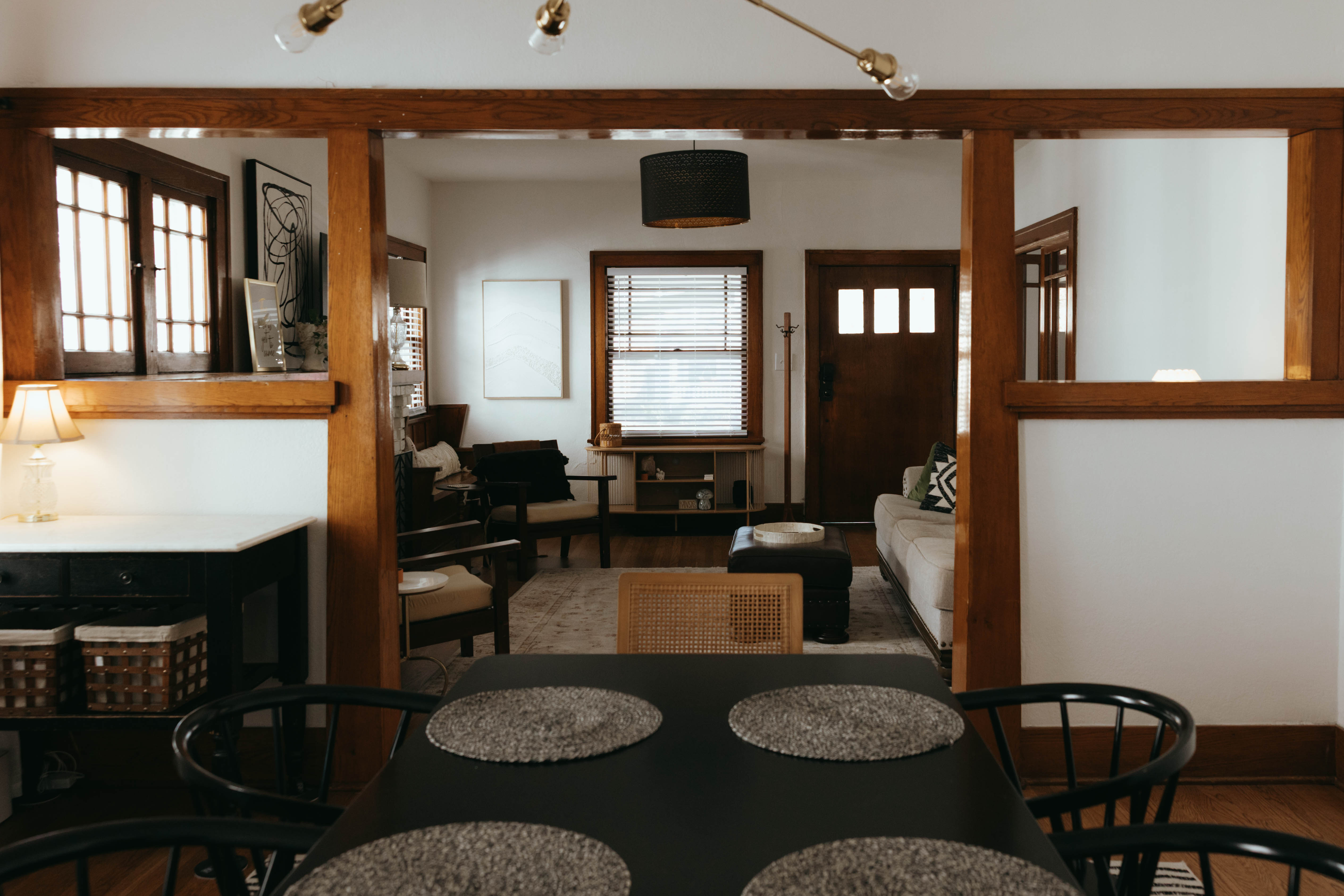 As you step inside, you’re welcomed by a bright, open-concept living and dining area that instantly feels like home. Just off the entryway, you’ll find a dedicated office and lounge space—perfect for remote work or a quiet place to unwind. While the home has been beautifully renovated, touches of its original character still shine through, especially in the living room. With comfortable seating for six and a large smart TV, it’s the ideal space to gather, relax, and make lasting memories. The dining area also seats six, offering a cozy setting to enjoy meals together. The kitchen is truly the heart of the home. From the charming checkered floors to the stunning green cabinetry, this space is both stylish and uplifting. Spacious and fully equipped, it has everything you need to make cooking effortless and enjoyable during your stay. Here's why you'll love it: -Updated stainless steel appliances -Coffee bar (standard drip coffee maker) -Ice and water dispenser -Dishwasher -Toaster -Blender Down the hallway, you’ll find both bedrooms, each thoughtfully designed with comfort and relaxation in mind. BEDROOM 1: -King bed -TV -Sound machine -Ceiling fan -Closet -Luggage rack -Full length mirror -Blackout curtains BEDROOM 2: -Queen bed -Sound machine -Ceiling fan -Closet -Luggage rack -Tower fan -Full length mirror -Blackout curtains Situated between the bedrooms is the newly updated bathroom. This moody, modern space is designed to help you feel refreshed and at your best. -Shower/Tub combo -Ample storage -Lots of counter space -Plush towels -Shampoo, conditioner, & body wash -Hair dryer In the basement you'll find the laundry facilities -- Perfect for longer stays. Start your day with coffee on the front porch or wind down in the evening on the back patio. From indoor comfort to outdoor relaxation, this home has everything you need—whether you’re staying for a few days or a while. We'd be so happy to host you! PLEASE NOTE: -Guests are not allowed to make a reservation in their city of residence. Guests with a 316 area phone number will be required to submit their drivers license upon approval. If there is a local address on the drivers license, the booking will be cancelled. No exceptions. -We only accept bookings from individuals aged 25 and older. Bookings made by anyone under the age of 25 will not be accepted.