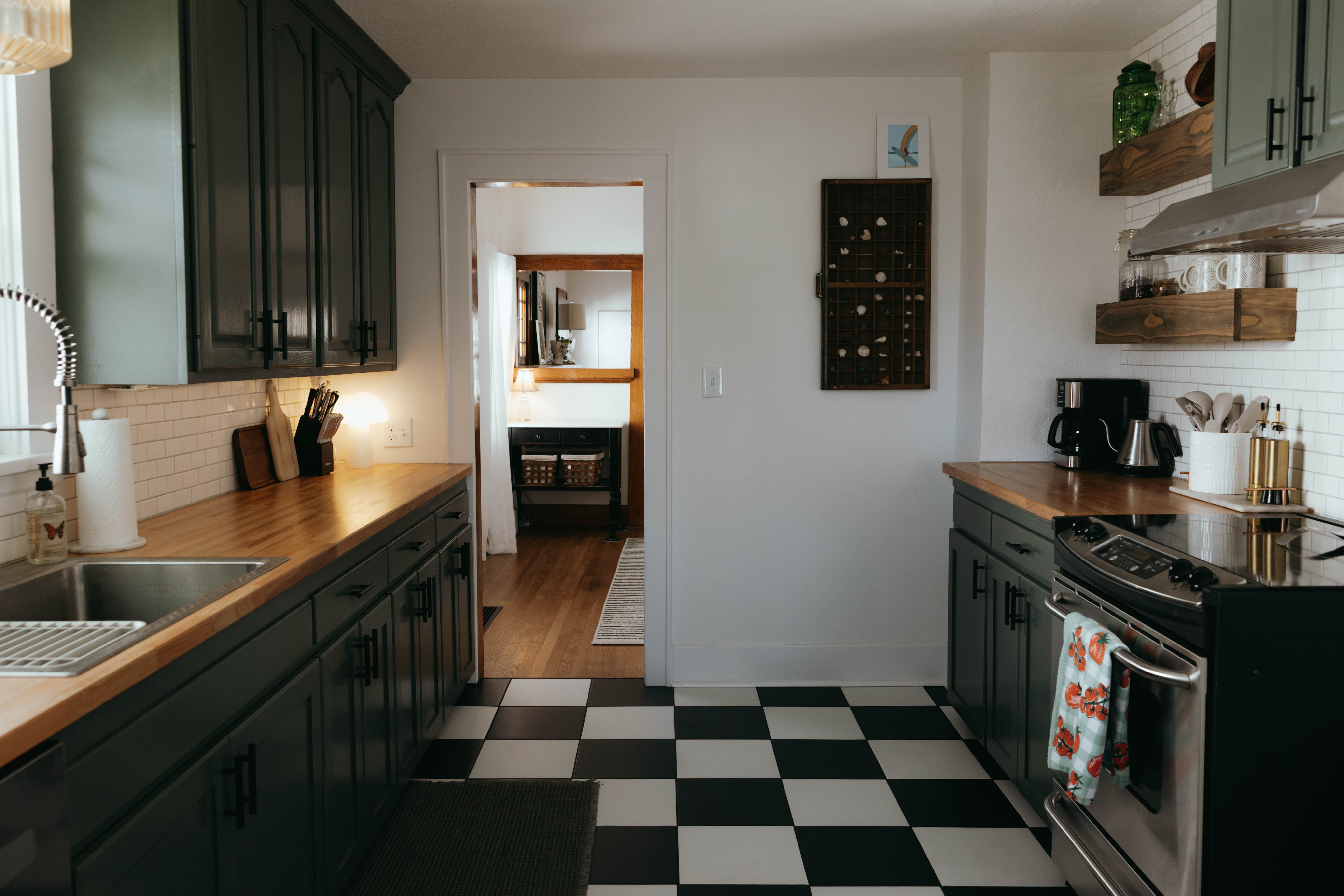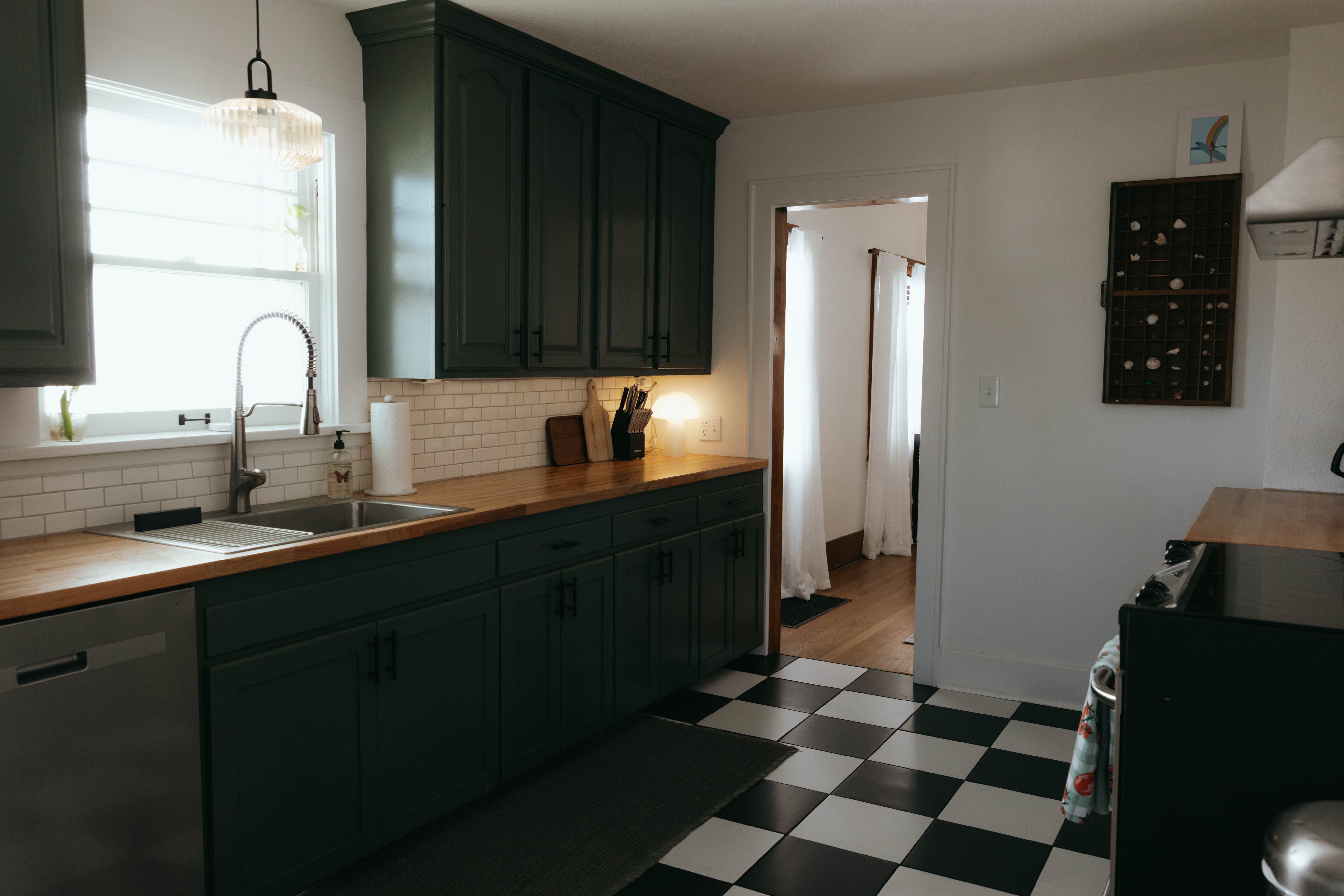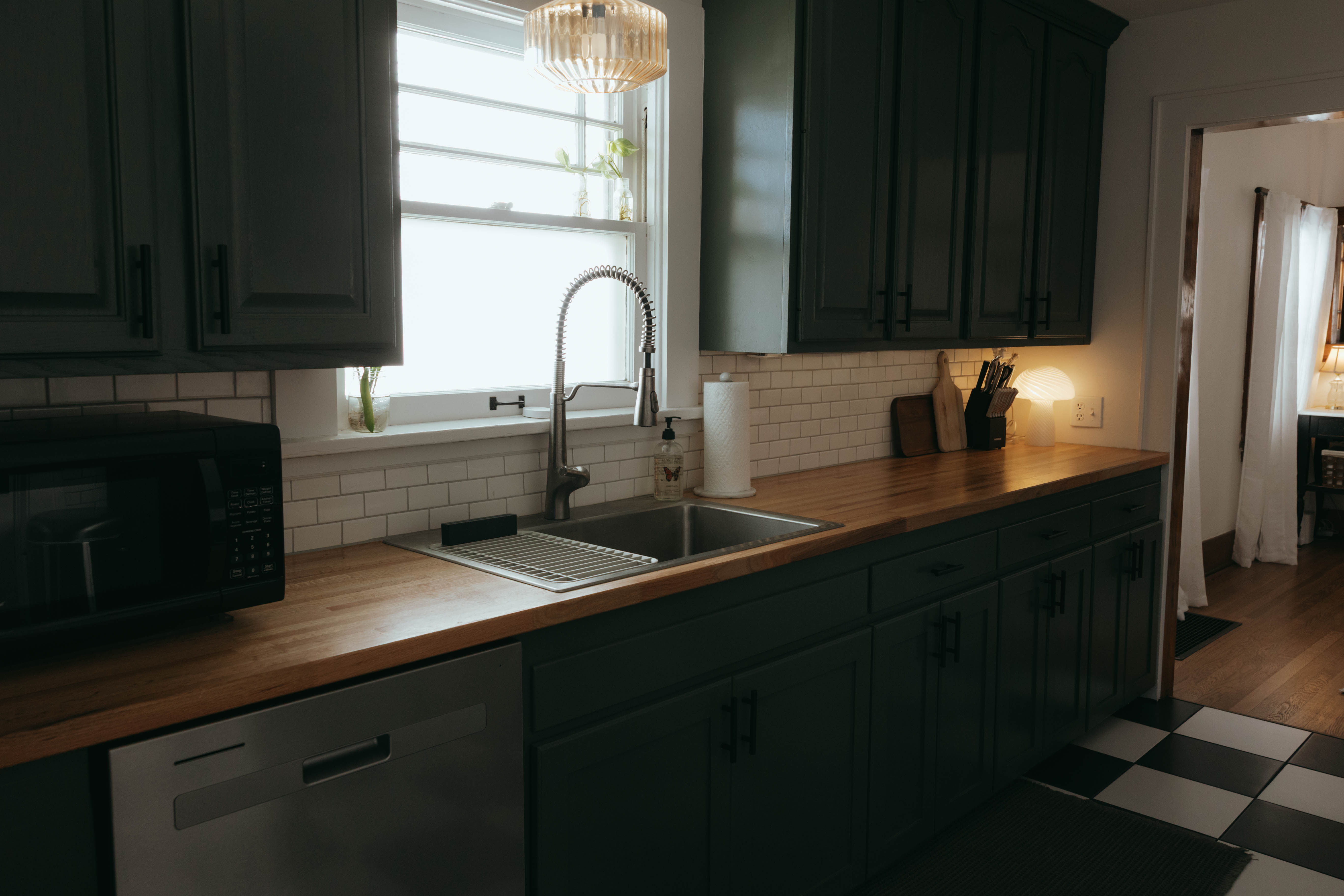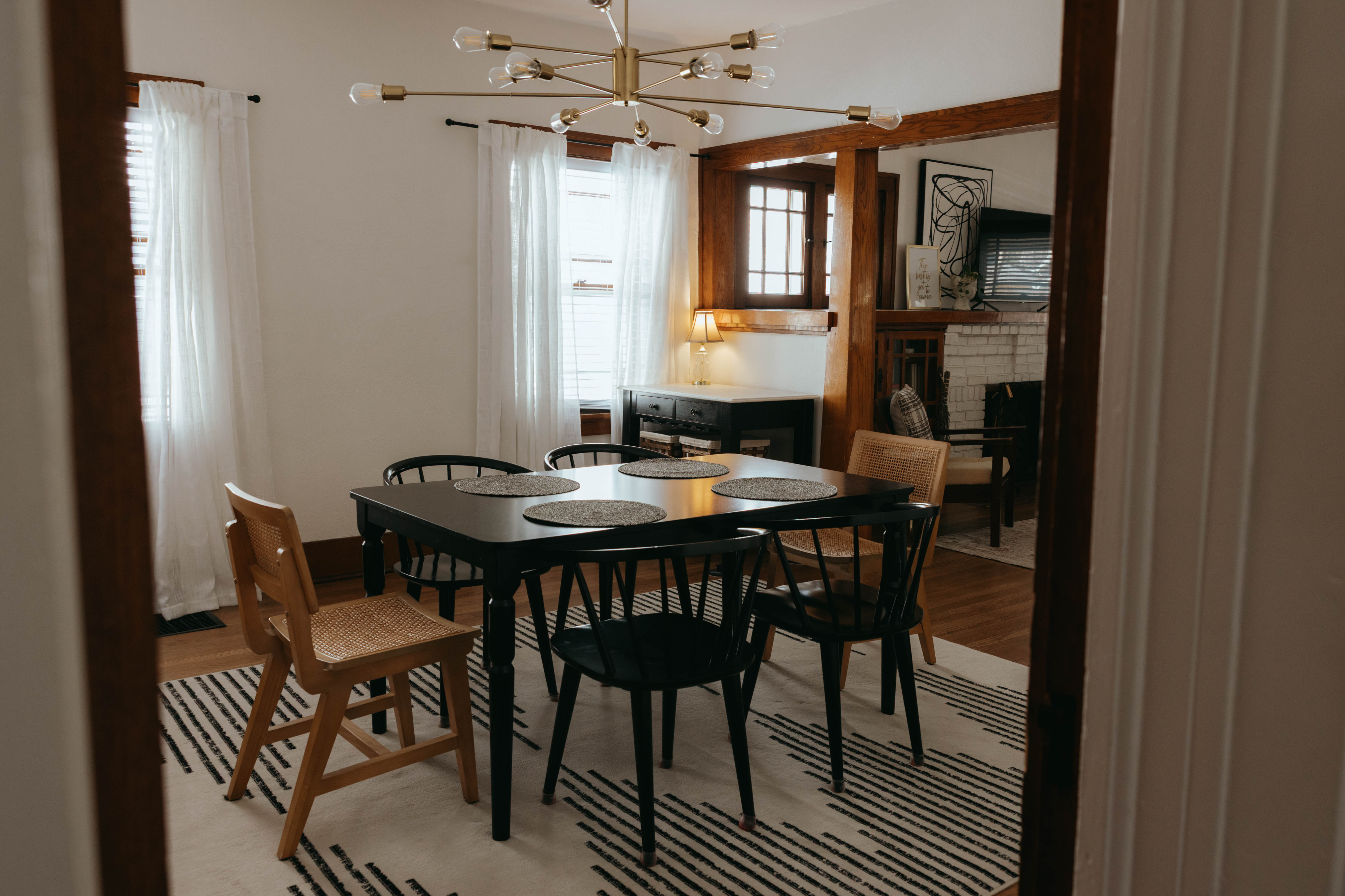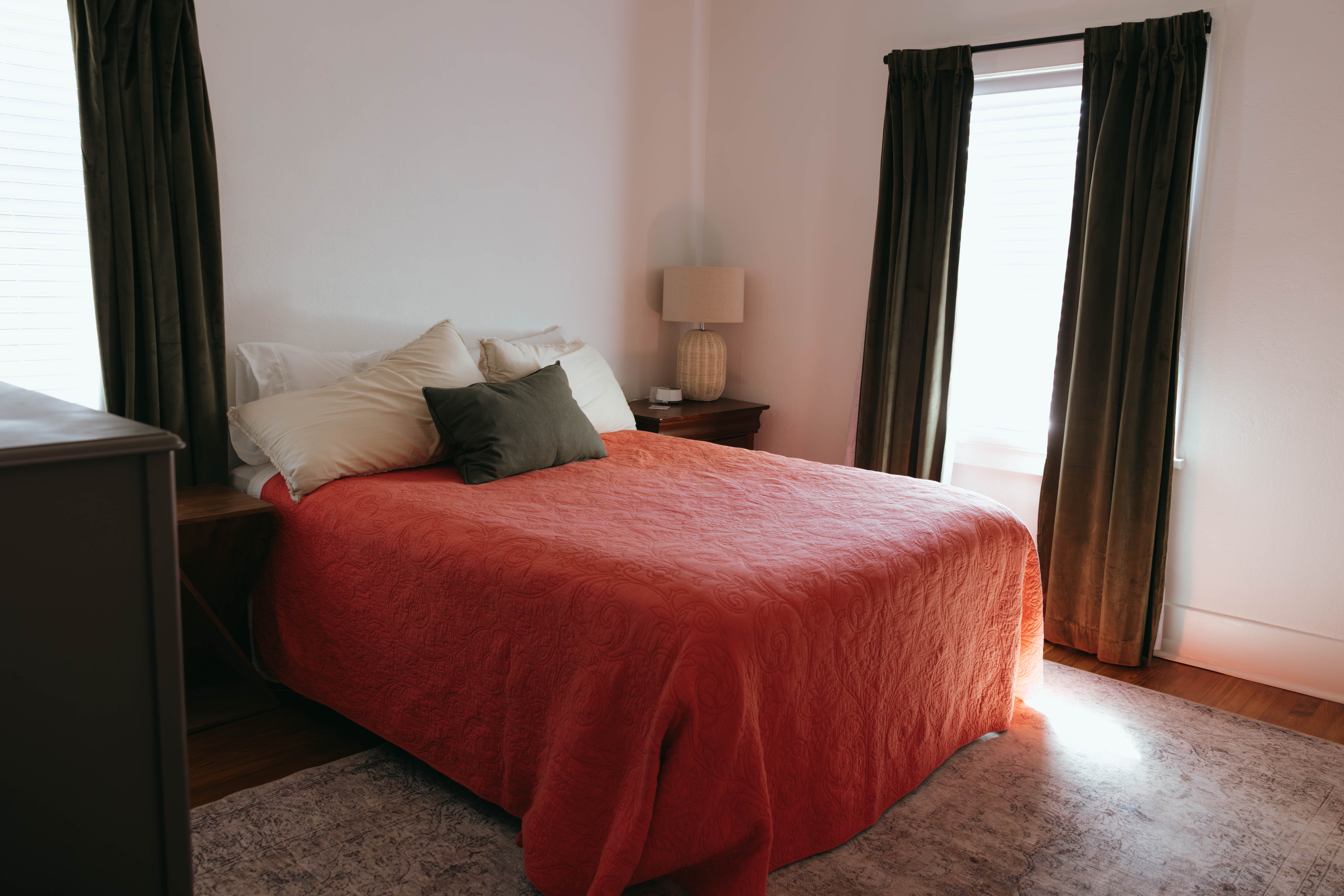 As you step inside, you’re welcomed by a bright, open-concept living and dining area that instantly feels like home. Just off the entryway, you’ll find a dedicated office and lounge space—perfect for remote work or a quiet place to unwind. While the home has been beautifully renovated, touches of its original character still shine through, especially in the living room. With comfortable seating for six and a large smart TV, it’s the ideal space to gather, relax, and make lasting memories. The dining area also seats six, offering a cozy setting to enjoy meals together. The kitchen is truly the heart of the home. From the charming checkered floors to the stunning green cabinetry, this space is both stylish and uplifting. Spacious and fully equipped, it has everything you need to make cooking effortless and enjoyable during your stay. Here's why you'll love it: -Updated stainless steel appliances -Coffee bar (standard drip coffee maker) -Ice and water dispenser -Dishwasher -Toaster -Blender Down the hallway, you’ll find both bedrooms, each thoughtfully designed with comfort and relaxation in mind. BEDROOM 1: -King bed -TV -Sound machine -Ceiling fan -Closet -Luggage rack -Full length mirror -Blackout curtains BEDROOM 2: -Queen bed -Sound machine -Ceiling fan -Closet -Luggage rack -Tower fan -Full length mirror -Blackout curtains Situated between the bedrooms is the newly updated bathroom. This moody, modern space is designed to help you feel refreshed and at your best. -Shower/Tub combo -Ample storage -Lots of counter space -Plush towels -Shampoo, conditioner, & body wash -Hair dryer In the basement you'll find the laundry facilities -- Perfect for longer stays. Start your day with coffee on the front porch or wind down in the evening on the back patio. From indoor comfort to outdoor relaxation, this home has everything you need—whether you’re staying for a few days or a while. We'd be so happy to host you! PLEASE NOTE: -Guests are not allowed to make a reservation in their city of residence. Guests with a 316 area phone number will be required to submit their drivers license upon approval. If there is a local address on the drivers license, the booking will be cancelled. No exceptions. -We only accept bookings from individuals aged 25 and older. Bookings made by anyone under the age of 25 will not be accepted.