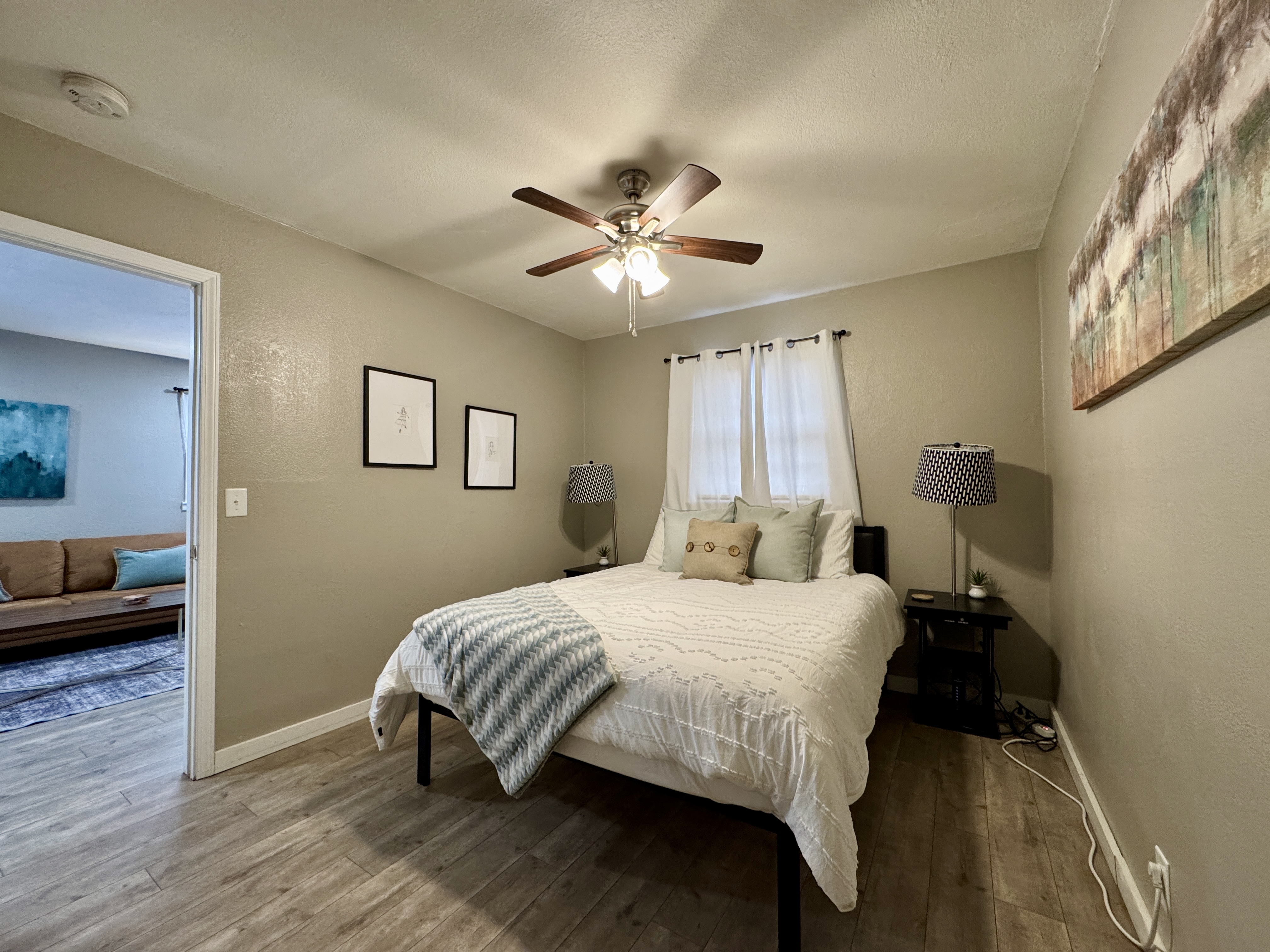 Riverfront Stadium - 6 Min Airport - 7 Min Intrust Bank Arena - 8 Min Sedgwick County Zoo - 8 Min The Wave - 9 Min As you step inside the home, you’re welcomed by a full-size kitchen thoughtfully equipped for both short visits and extended stays. Whether you’re preparing a quick breakfast or a full home-cooked meal, you’ll have everything you need, including a stove, oven, microwave, Keurig coffee maker, and a full-size refrigerator. The kitchen is stocked with everyday essentials to make settling in easy and comfortable from day one. Moving further into the space, you’ll find the living room — an ideal place to relax and recharge after a long day of travel, work, or exploring Wichita. Stretch out on the comfortable couch, unwind, and enjoy your favorite movies or shows on the large Smart TV. Just off the living room is the bedroom, offering a peaceful retreat at the end of the day. The room features a queen-size bed with a comfortable, plush mattress to ensure a restful night’s sleep. A spacious closet provides plenty of room to unpack, making this home especially convenient for longer stays. The attached ensuite bathroom adds an extra layer of comfort and privacy and includes a shower/tub combination. Working? This space has a workspace with fast Wi-Fi, and is conveniently located in the living room. This property is non-smoking and drug-free. This includes E-cigarettes and any illegal substances. PLEASE NOTE: -Guests are not allowed to make a reservation in their city of residence. Guests with a 316 area phone number will be required to submit their drivers license upon approval. If there is a local address on the drivers license, the booking will be cancelled. No exceptions. -We only accept bookings from individuals aged 25 and older. Bookings made by anyone under the age of 25 will not be accepted.