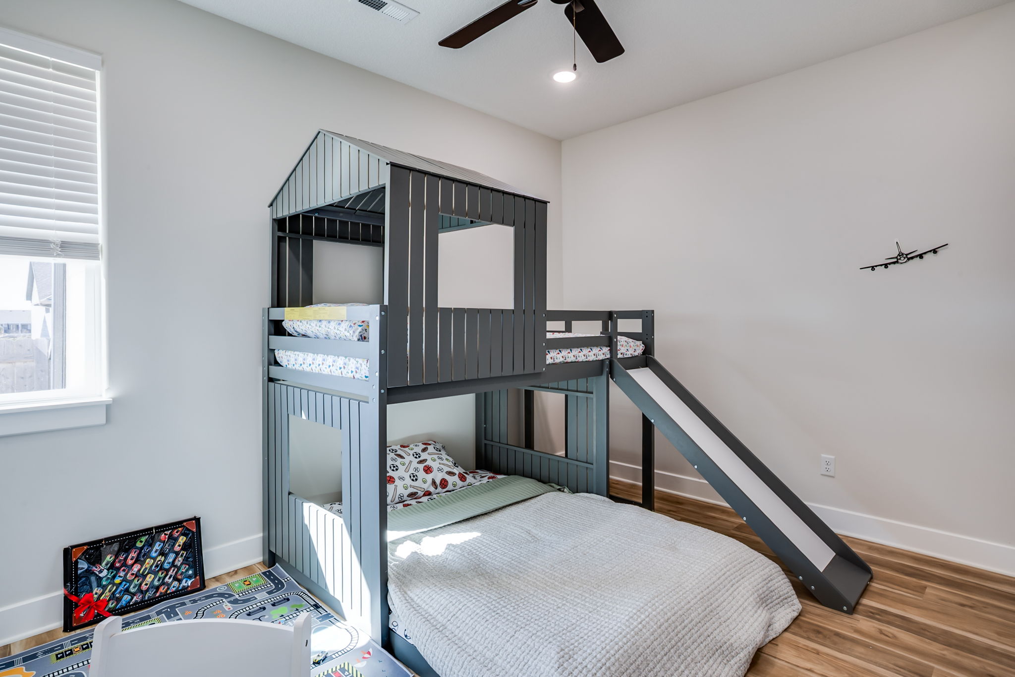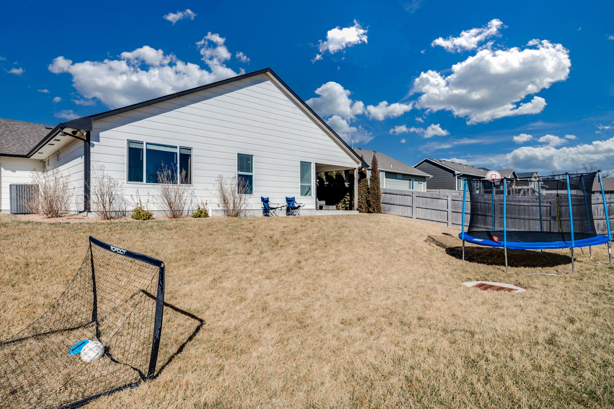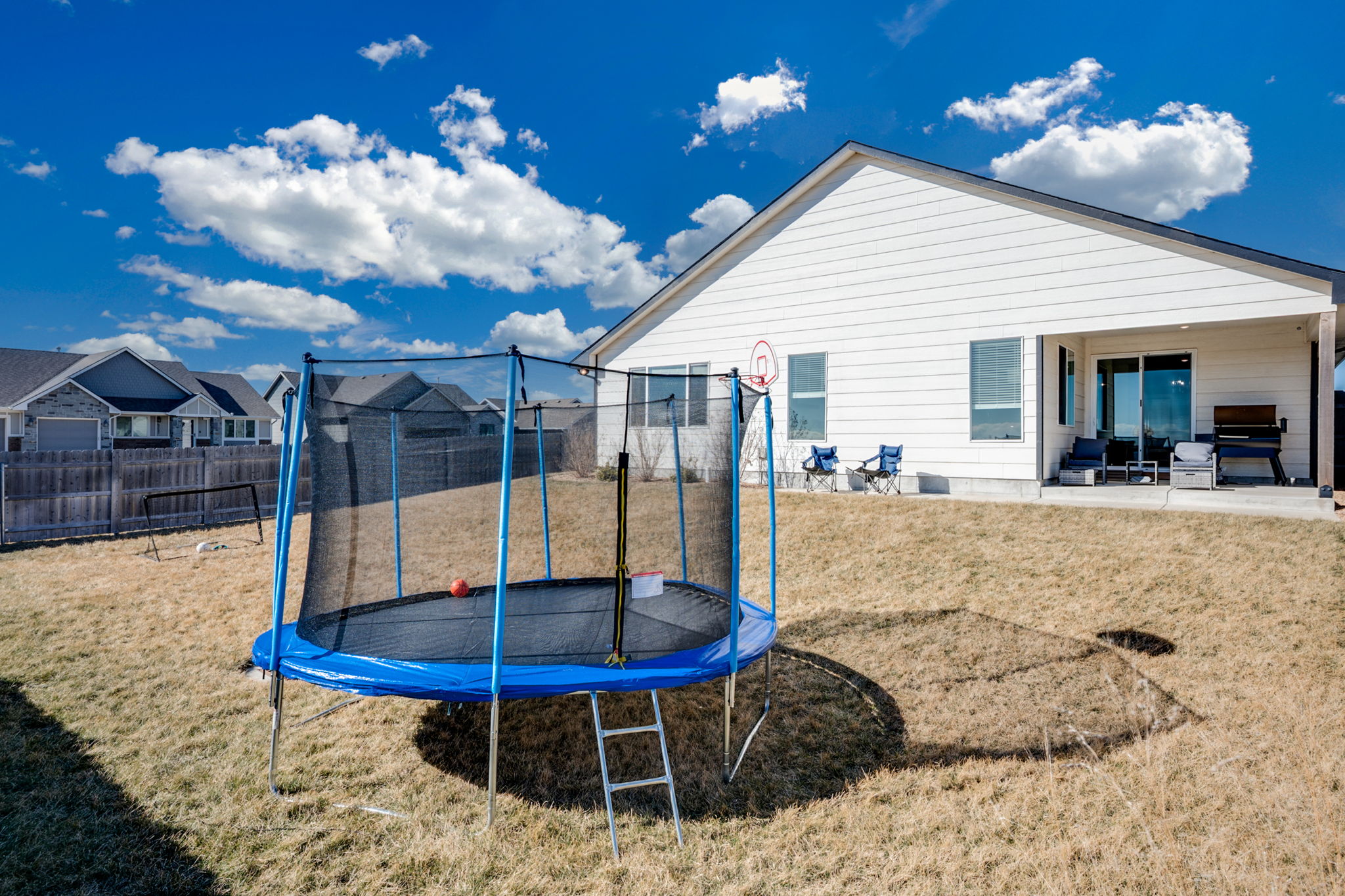 Walking into the home, you’re welcomed by a bright, open-concept kitchen, dining, and living area designed for gathering and connection. The fully stocked kitchen truly has everything you need and more, featuring modern finishes, a large island with bar seating for three, and a spacious pantry for extra storage.y Heres why you'll love it! - New stainless steel appliances - Ice and water dispenser - Blender - Crockpot - Rice cooker - Egg cooker - Air fryer - Griddle - Cooking basics (pots, pans, utensils, and more) Just off the main living area, you’ll find a dedicated workspace with a large desk and comfortable chair — perfect for working remotely during your stay. Continuing into the living room, this space offers two modern auto-reclining couches and a large flat-screen TV. Turn on the sound bar for a cozy family movie night, or gather together for games and conversation after a full day. Each bedroom is thoughtfully designed with comfort and convenience in mind. Bedroom 1 (Primary Suite) - King bed - Ceiling fan - Dresser - Full-length mirror Ensuite Bathroom - Double (his and hers) sinks - Large walk-in shower - Bidet Bedroom 2 - Queen bed - Large closet and dresser - Mirror with built-in light - Ceiling fan Children’s Room - Bunk bed (double on bottom, twin on top) - Closet - Ceiling fan - Pack-n-play Hallway Bathroom - Shower/tub combo - Large vanity - Extra storage - Bidet For added convenience, enjoy the in-unit washer and dryer located just off the entryway — perfect for washing uniforms or refreshing clothes during longer stays. Outside, bring the whole family and enjoy the fenced backyard. Fire up the smoker for dinner, relax on the patio, or let the kids burn off energy on the trampoline (please use at your own risk). PLEASE NOTE: -Guests are not allowed to make a reservation in their city of residence. Guests with a 316 area phone number will be required to submit their drivers license upon approval. If there is a local address on the drivers license, the booking will be cancelled. No exceptions. -We only accept bookings from individuals aged 25 and older. Bookings made by anyone under the age of 25 will not be accepted. We can't wait to host you!