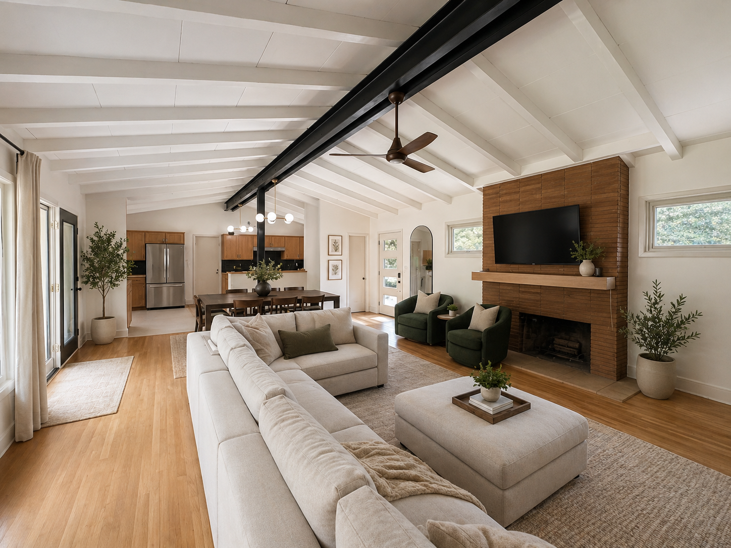 Enjoy our modern and thoughtfully updated 3-bedroom, 2-bath home with a warm, cozy feel and stylish finishes throughout. With spacious living areas, a fully equipped kitchen, large bedrooms, and beautifully renovated bathrooms, this space is the perfect home away from home. Perfect for families, groups, or business travelers looking for a relaxing stay with plenty of space to unwind. Conveniently located with easy access to local dining, shopping, and attractions.
