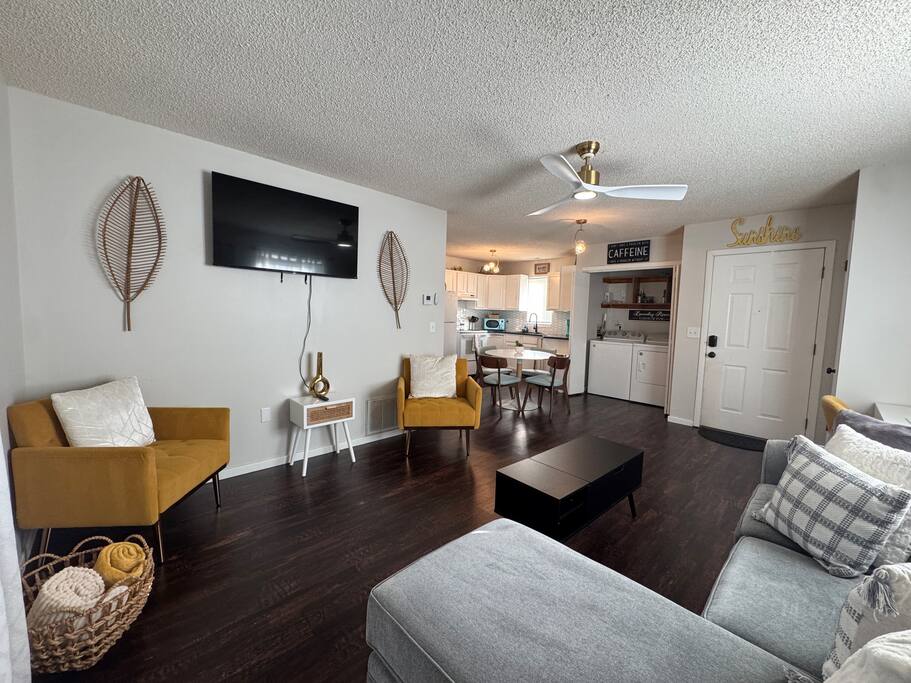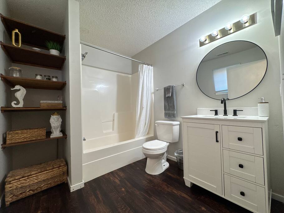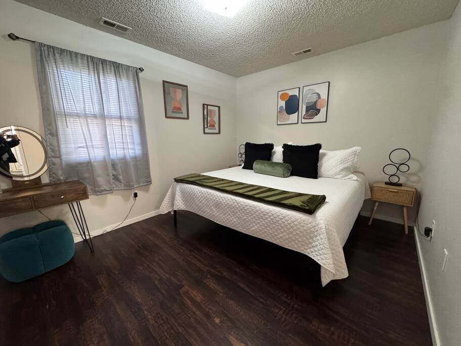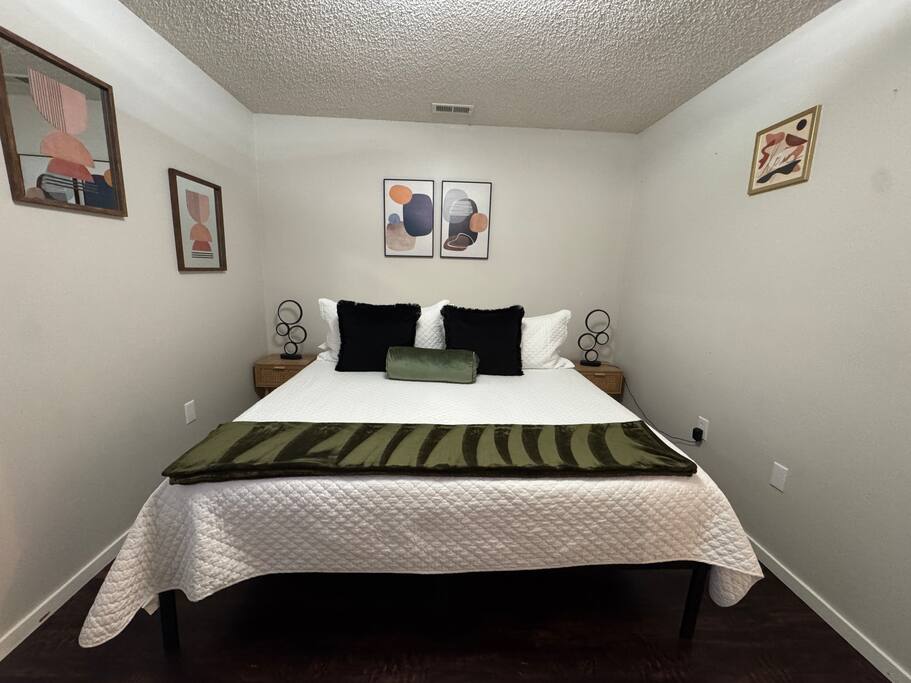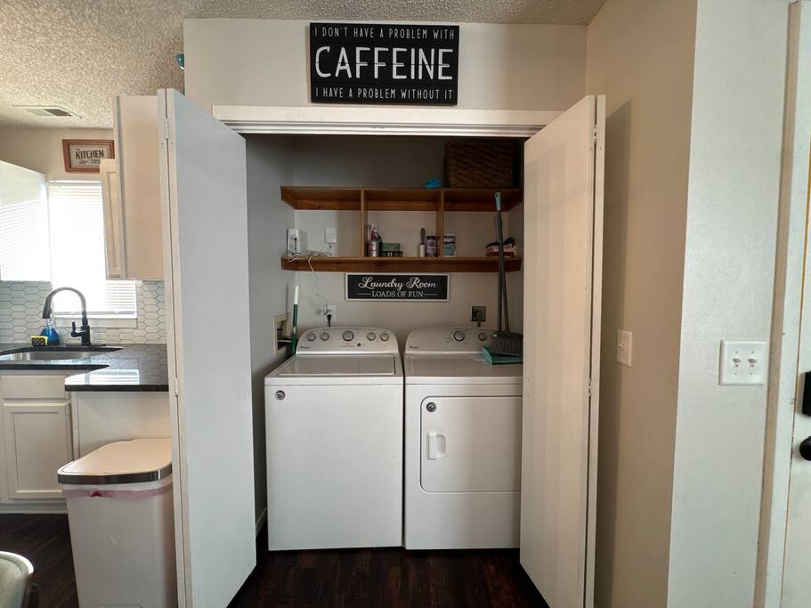 St. Francis Regional Medical Hospital - 3 min drive. Wesley Medical Center - 7 min drive. As you step into the home, you'll be greeted by an open living space that features a cozy couch and a flat-screen TV, perfect for relaxing after a long day of travel or exploring Wichita. The kitchen is fully equipped with all the essentials you need to whip up a delicious meal, including a stove, refrigerator, microwave, blender, and coffee maker. Off the kitchen, you'll find a cozy dining area that seats four people comfortably. Heres why you'll love it! BEDROOM: -King sized bed -Vanity with LED light -Closet BATHROOM: -Shower/Tub combo -Shampoo -Conditioner -Hair dryer -Plush towels -Cotton balls, q-tips, and cotton pads -Essentials The in home washer and dryer is a perfect addition to the space for short or long stays. We strive to provide our guests with a memorable stay, and we hope you will enjoy the comfort and convenience of our home during your visit! PLEASE NOTE: -Guests are not allowed to make a reservation in their city of residence. Guests with a 316 area phone number will be required to submit their drivers license upon approval. If there is a local address on the drivers license, the booking will be cancelled. No exceptions. -We only accept bookings from individuals aged 25 and older. Bookings made by anyone under the age of 25 will not be accepted. We can't wait to host you.