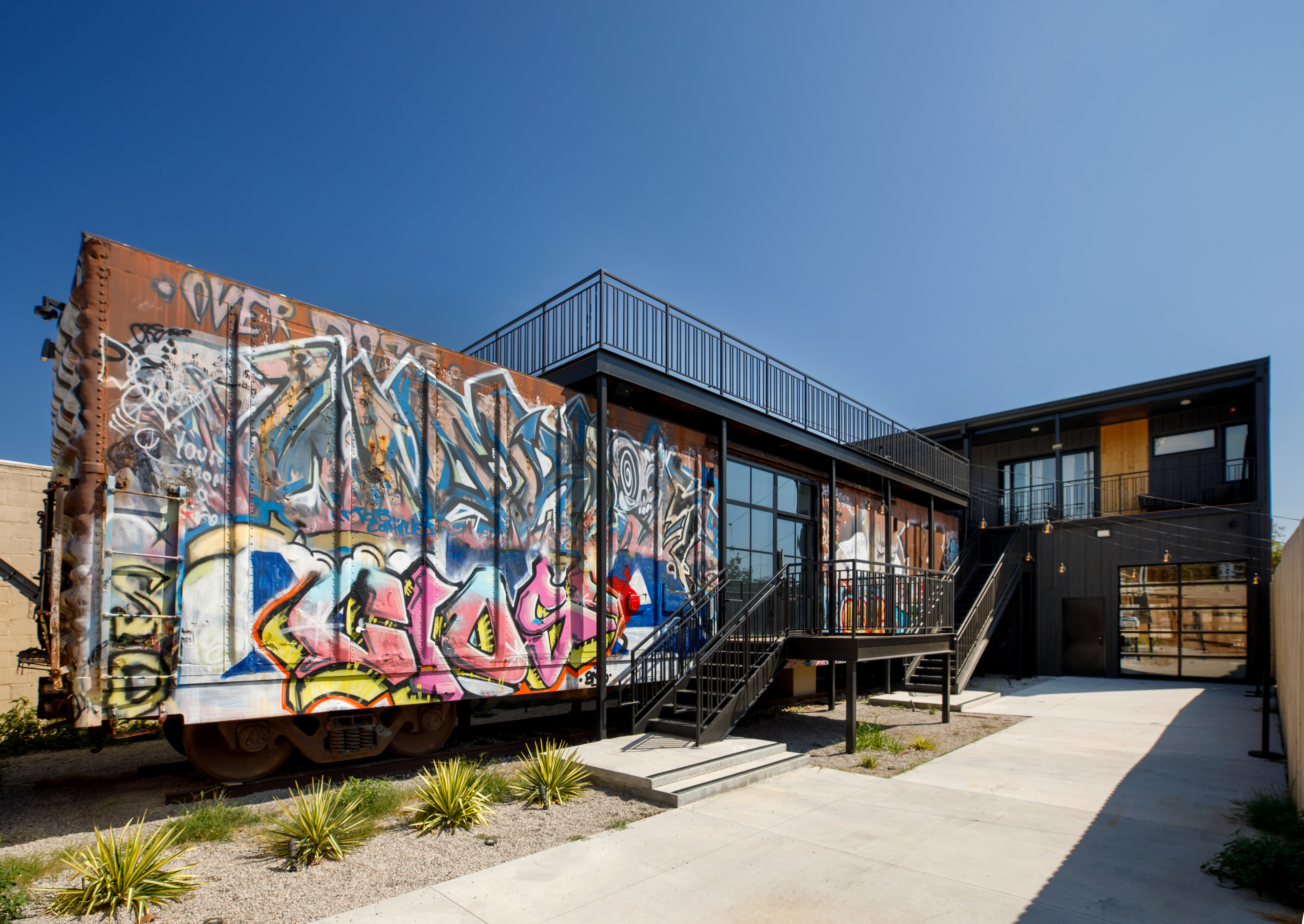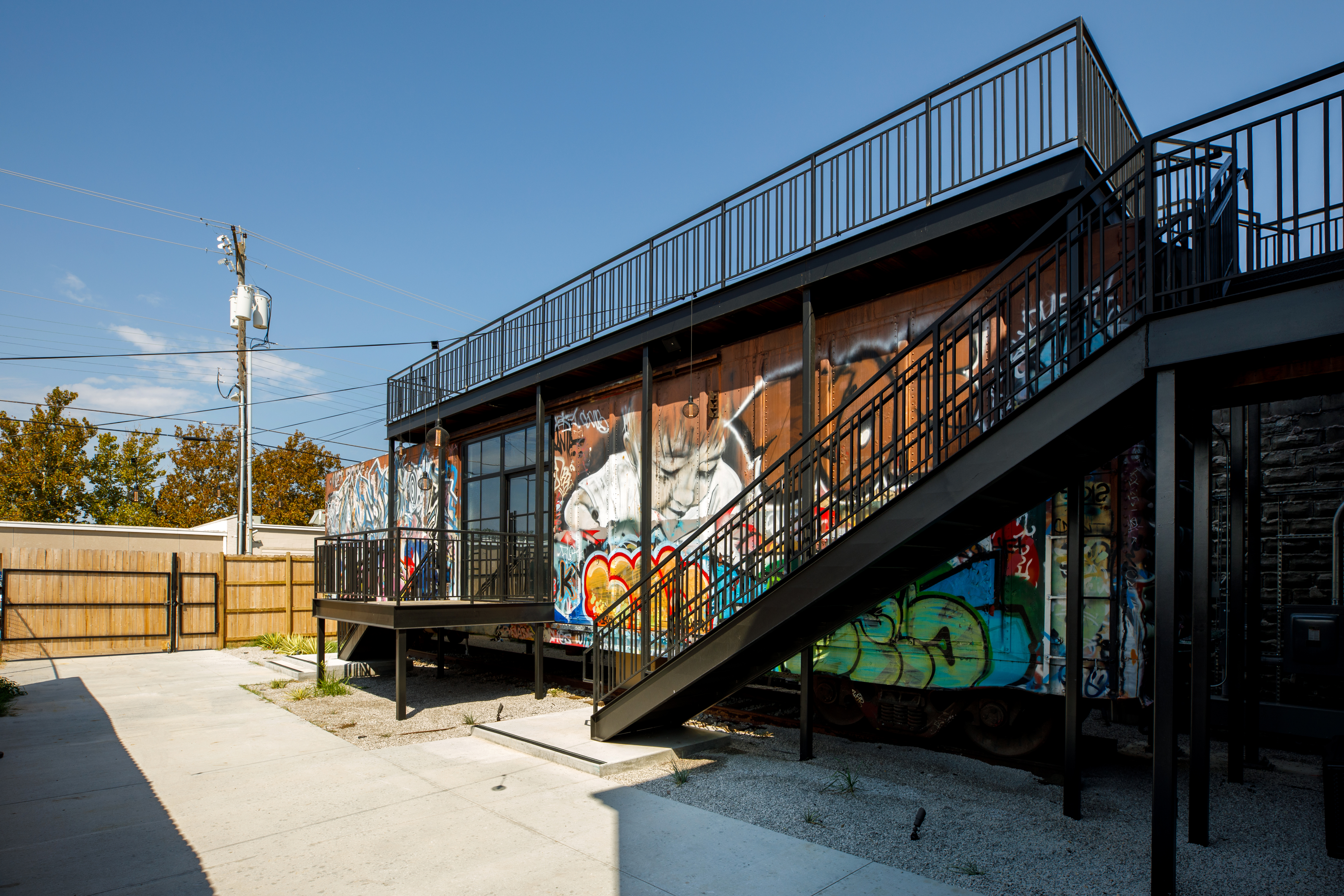 St Francis is the up and coming street in downtown Wichita. Our closest recognizable neighbor is Intrust Bank Arena, and we are just a couple blocks away from some vibin' locally owned restaurants, a plant shop, and breweries. Our brand new event venue hosts small gatherings, and we have a large industrial event venue across the street. This boxcar airbnb shares a courtyard with the event venue.