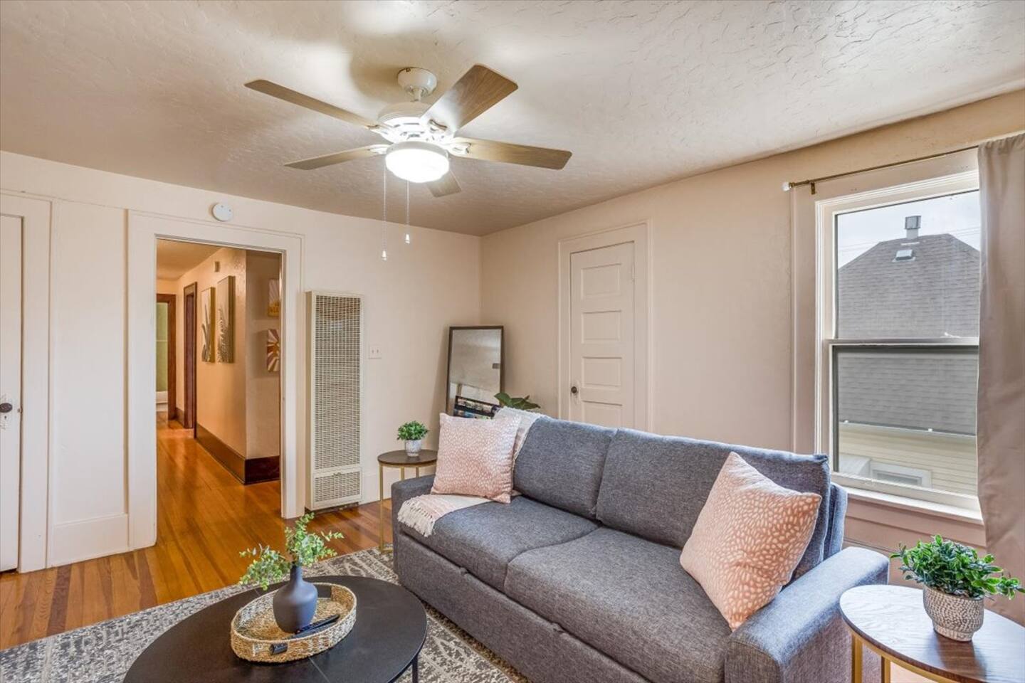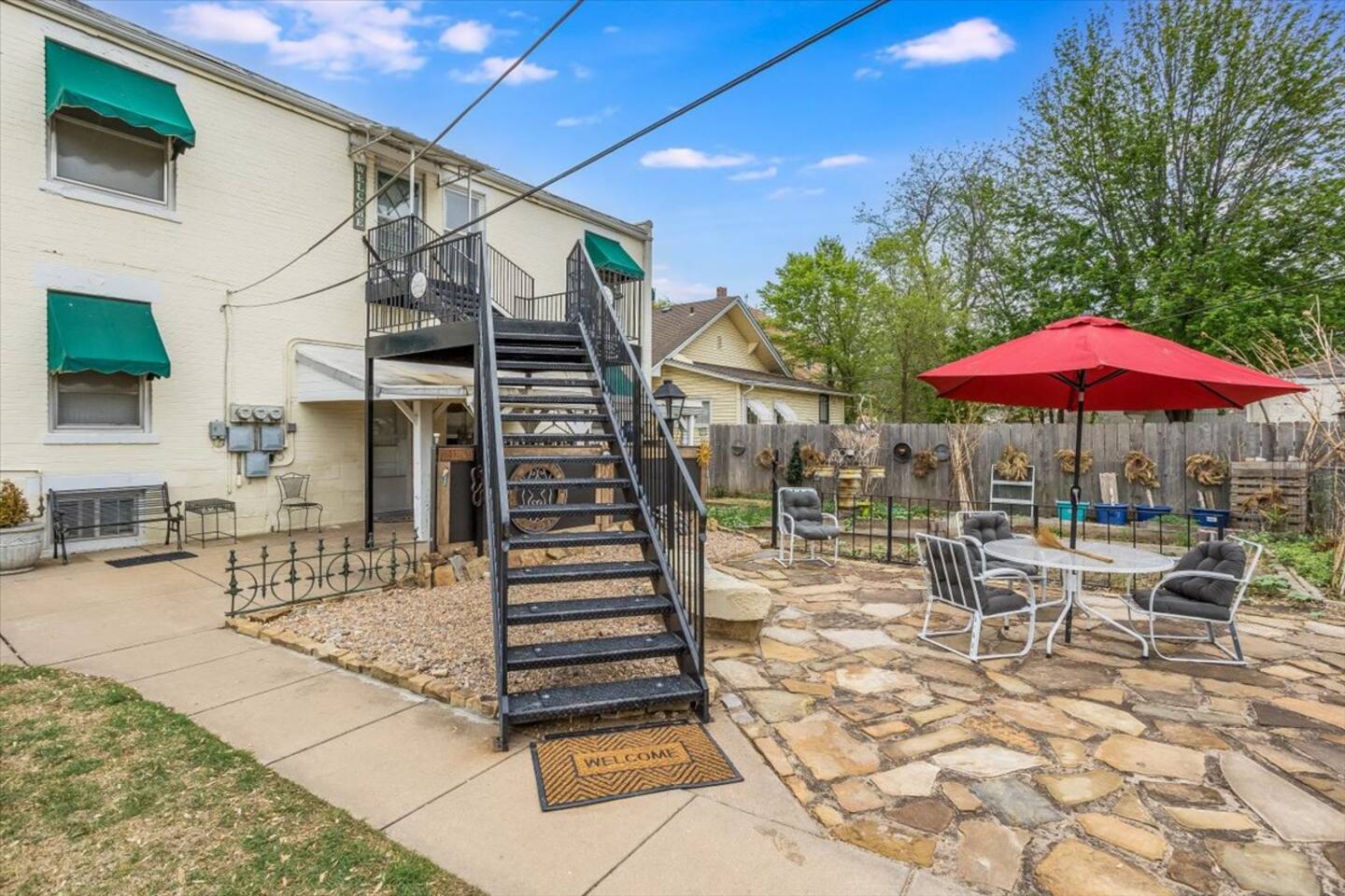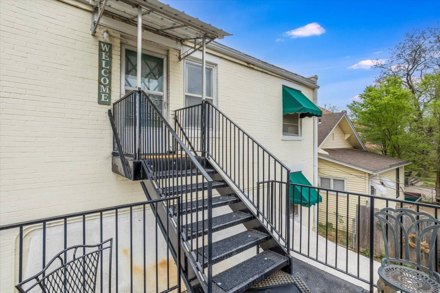 * PLEASE NOTE * - This property is part of a 4 unit complex. Please note, you may experience neighboring noises. - This unit is on the second floor. There is an exterior staircase to the second floor with several steps. - This property has a communal fenced patio/yard. This space is shared among all 4 units. Please note, the grill is also shared. - This property does NOT have a washer and dryer. - This property is cooled by a window unit and portable AC unit. This - All smart TV’s allow you to sign into any streaming services that you have access to at home! Just sign in with your current TV provider or username and password and you are ready to watch your favorite shows, sports and movies! Cable service is not provided. - This units heat is partially controlled by the thermostat in the unit downstairs. Please make note of this. There are also wall heaters available to set to your liking.