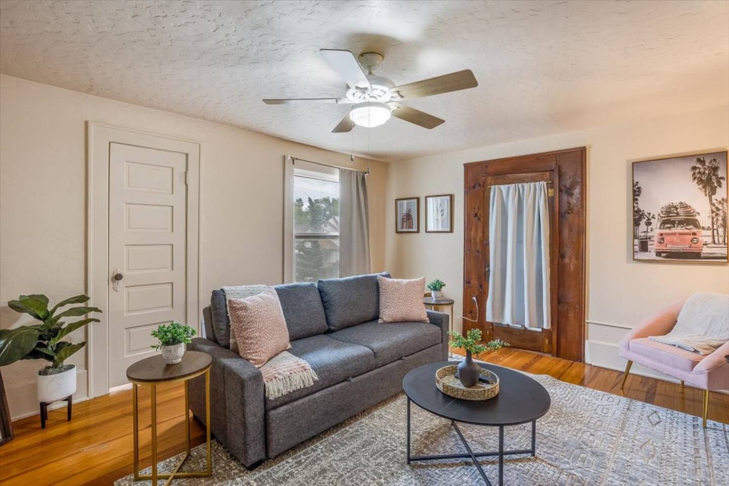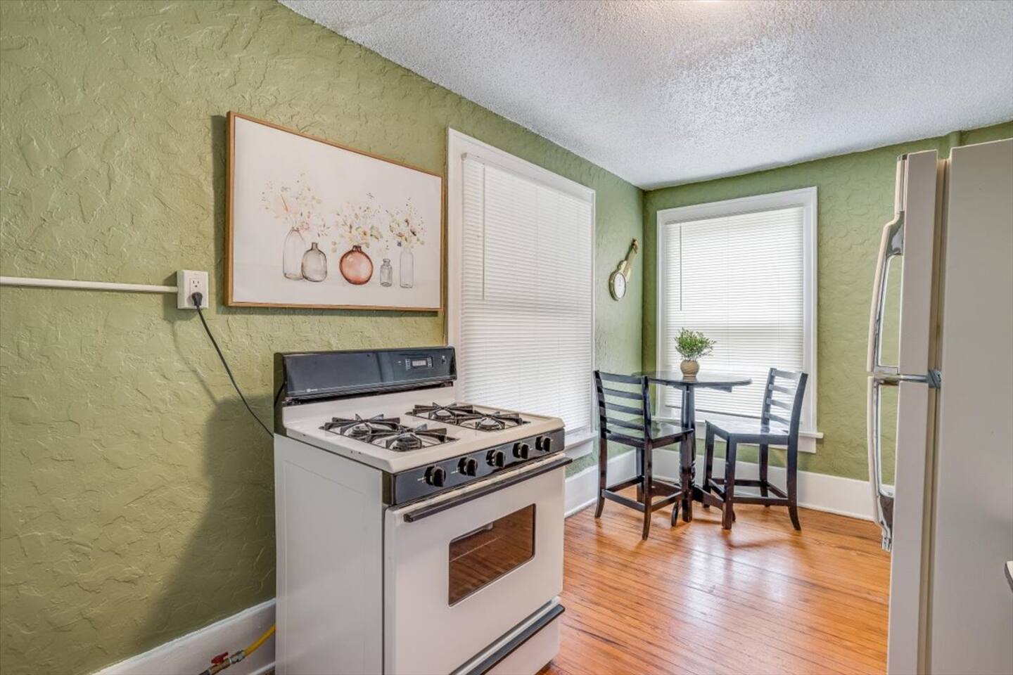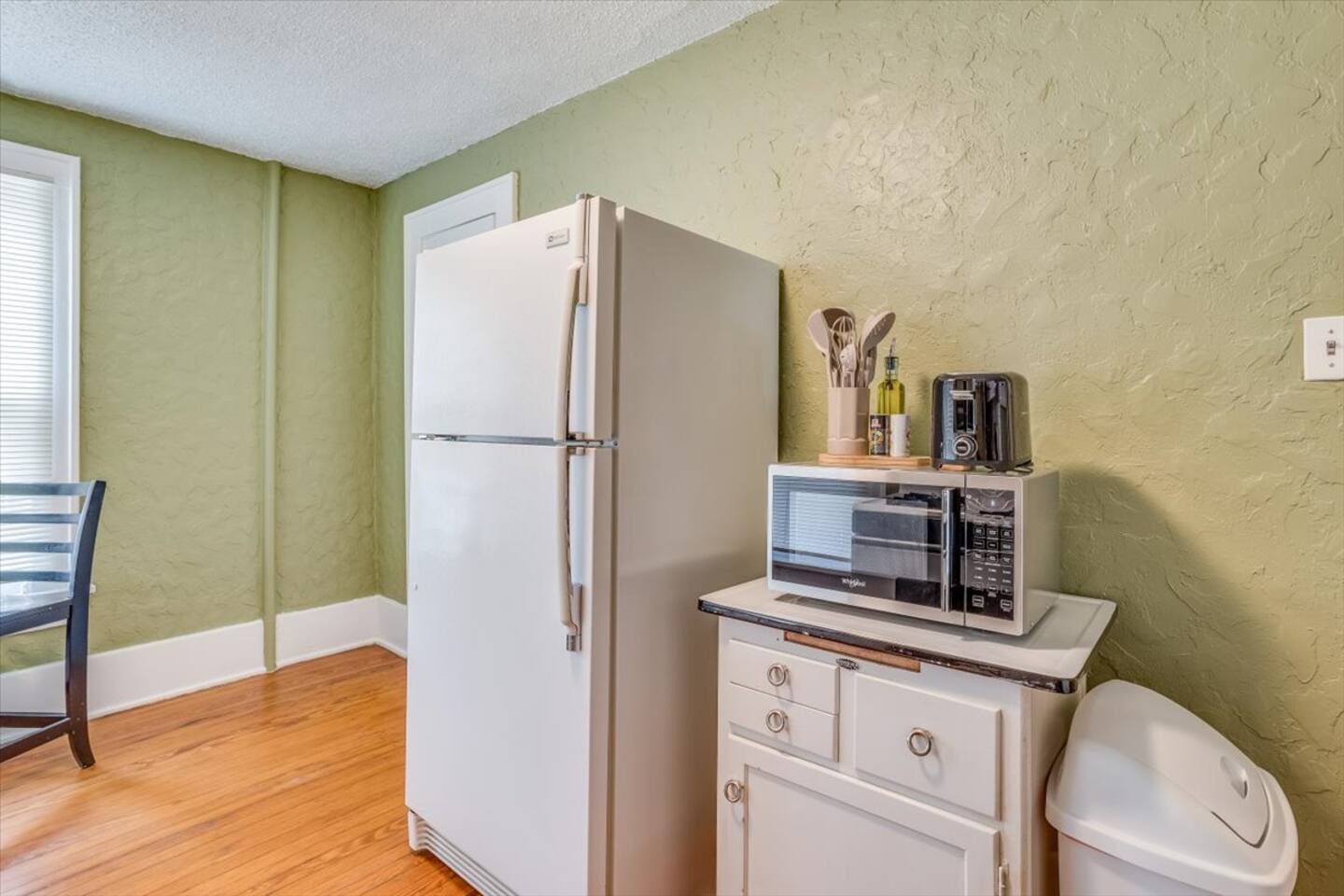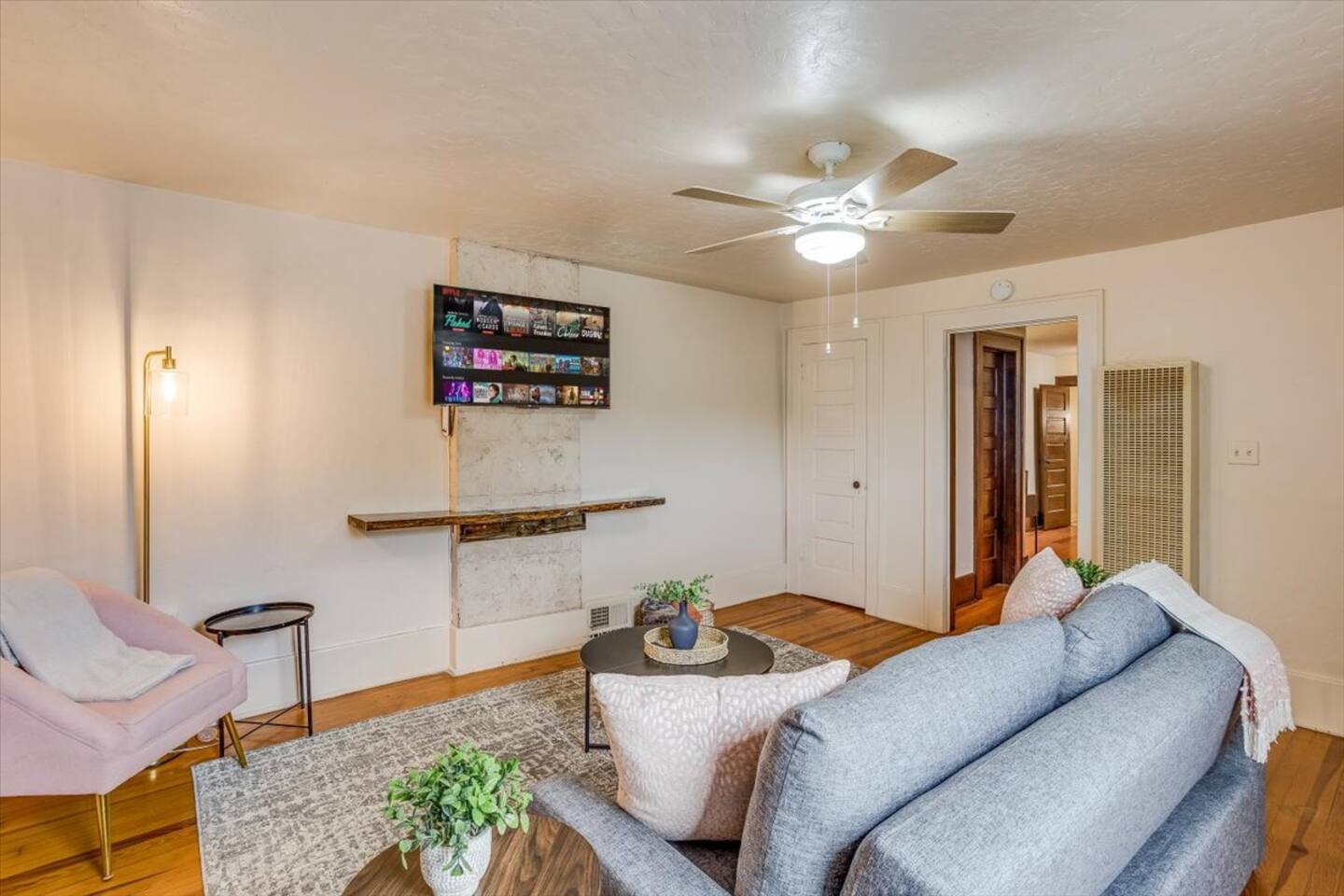 * PLEASE NOTE * - This property is part of a 4 unit complex. Please note, you may experience neighboring noises. - This unit is on the second floor. There is an exterior staircase to the second floor with several steps. - This property has a communal fenced patio/yard. This space is shared among all 4 units. Please note, the grill is also shared. - This property does NOT have a washer and dryer. - This property is cooled by a window unit and portable AC unit. This - All smart TV’s allow you to sign into any streaming services that you have access to at home! Just sign in with your current TV provider or username and password and you are ready to watch your favorite shows, sports and movies! Cable service is not provided. - This units heat is partially controlled by the thermostat in the unit downstairs. Please make note of this. There are also wall heaters available to set to your liking.