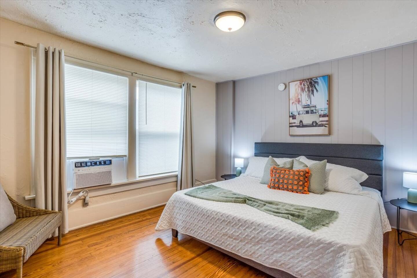 Welcome to our cozy and charming home in the heart of Wichita! Our home offers all the amenities you need for a comfortable stay. The house features one bedroom with a comfortable King-sized bed, 42" Smart TV and plenty of storage space for your belongings. The living room is a perfect place to relax and unwind after a busy day, with a comfortable couch that pulls out to a Queen size bed and a large flat-screen TV with streaming services (sign in necessary). Just off the living room you have access to a private balcony. The fully equipped kitchen has everything you need to prepare delicious meals, including a stove, oven, microwave, and refrigerator. You can enjoy your meals at the kitchen table which seats two people. The bathroom has been recently renovated and features a walk-in shower, fluffy towels, and complimentary toiletries. The house is located in a quiet residential neighborhood, just a short walk from downtown Wichita. You'll be close to all the best restaurants, bars, and shops in the area, as well as local attractions like the Wichita Art Museum, Botanica and the new baseball stadium. We take great pride in providing a clean, comfortable, and welcoming space for our guests. Whether you're visiting Wichita for work or leisure, we're confident that you'll love staying at our home. PLEASE NOTE: -Guests are not allowed to make a reservation in their city of residence. Guests with a 316 area phone number will be required to submit their drivers license upon approval. If there is a local address on the drivers license, the booking will be cancelled. No exceptions. -We only accept bookings from individuals aged 25 and older. Bookings made by anyone under the age of 25 will not be accepted.