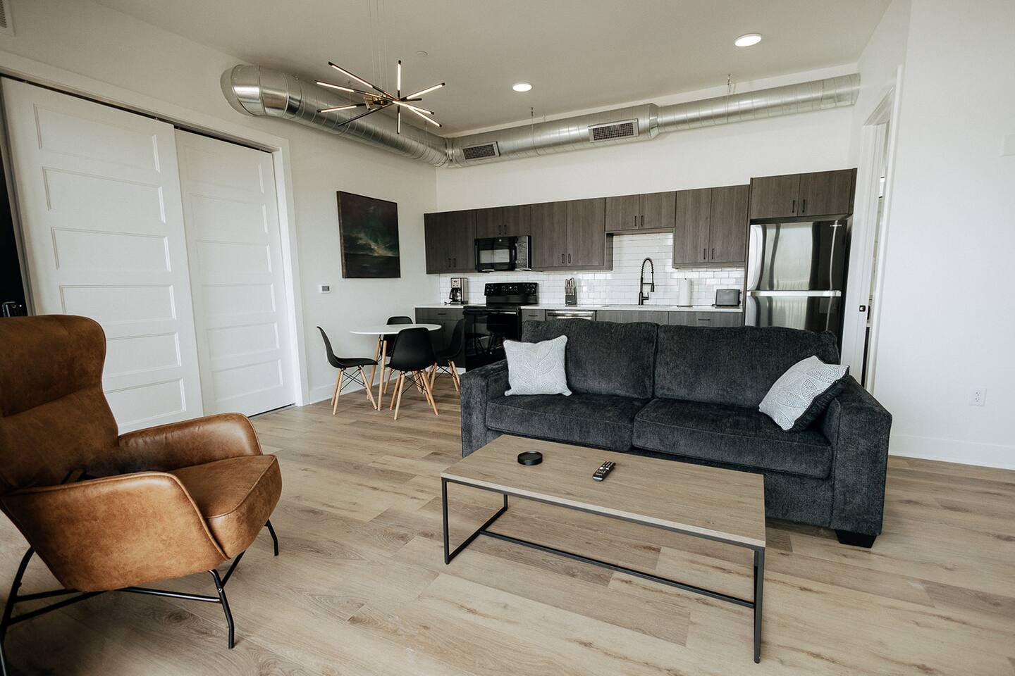 Enjoy a modern experience at this centrally-located loft, marked Unit 2. Just steps away from Intrust Bank Arena, and a couple blocks from downtown Wichita, you'll be in close proximity to all the amazing features of downtown living. This loft sits atop an event venue, which sometimes doubles as an upscale bar in the evenings during high capacity arena events. Please do not book this space if noise from a possible event in the venue may bother you. Events may go as late as midnight.