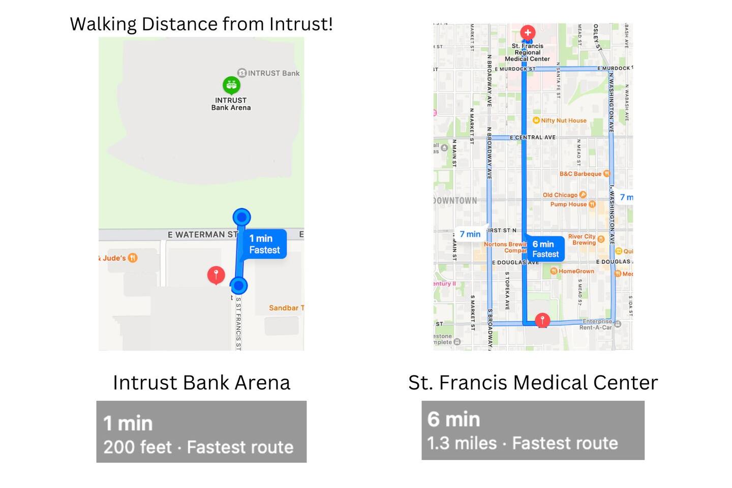 St Francis is the up and coming street in downtown Wichita. Our closest recognizable neighbor is Intrust Bank Arena, and we are just a couple blocks away from some vibin' locally owned restaurants, a plant shop, and breweries. Our brand new event venue below the loft hosts small gatherings, and we have a large industrial event venue across the street.