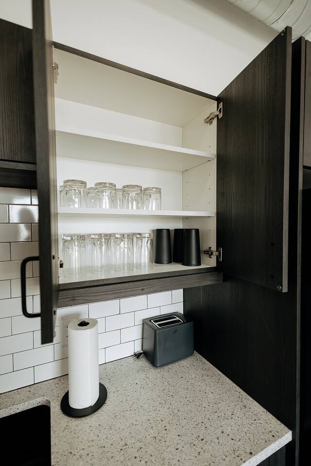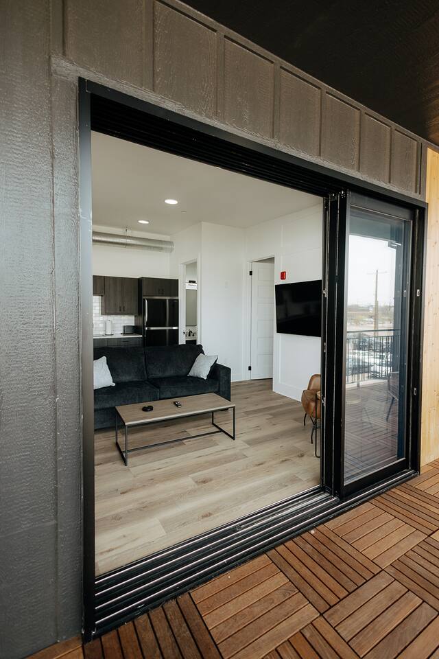 After parking behind the building in your designated spot, you'll walk in through the wooden gate and be in an enclosed courtyard. There is a boxcar Airbnb to your left, and stairs leading up to the other two units just beyond that. If the event venue has an event in process, you might encounter guests on your way up to your unit, although this won't be a common occurrence. PLEASE NOTE: -Guests are not allowed to make a reservation in their city of residence. Guests with a 316 area phone number will be required to submit their drivers license upon approval. If there is a local address on the drivers license, the booking will be cancelled. No exceptions. -We only accept bookings from individuals aged 25 and older. Bookings made by anyone under the age of 25 will not be accepted.