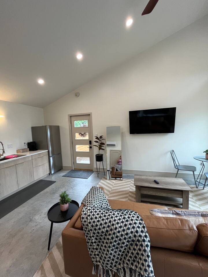 Our guest house offers a thoughtfully designed space, ideal for solo travelers, couples, or small families. With one cozy King bed and a full bathroom/laundry room you'll have everything you need during your stay. The studio is strategically located on the property to offer privacy during your stay. Located in west Wichita just off of US-400 provides easy access to the city's top attractions, dining, and entertainment options. Whether you're here for business or leisure, you'll find that everything you need is just a short drive or walk away. Amenities: -Fully equipped kitchen: Whip up your favorite meals with ease, complete with brand new appliances and utensils. -Wi-Fi: Stay connected with high-speed internet throughout your stay. -Cozy living area: Relax in our inviting living space, perfect for lounging or watching your favorite shows. -Outdoor patio: Enjoy your morning coffee or unwind with a glass of wine on our private patio, surrounded by a privacy fence and lush greenery. -Immaculate cleanliness: We take pride in maintaining a spotless and sanitized environment for your peace of mind. -Local recommendations: We are happy to provide insider tips on the best local restaurants, activities, and sights to explore. -Privacy and security: Rest easy knowing our property is secure and offers the utmost privacy. As your hosts, we are dedicated to ensuring your stay is as comfortable as possible. We're here to answer any questions, provide assistance, and make recommendations to enhance your experience. ** Please note, guests are not allowed to make a reservation in their city of residence. Guests with a 316 area phone number will be required to submit their drivers license upon approval. If there is a local address on the drivers license, the booking will be cancelled. No exceptions.