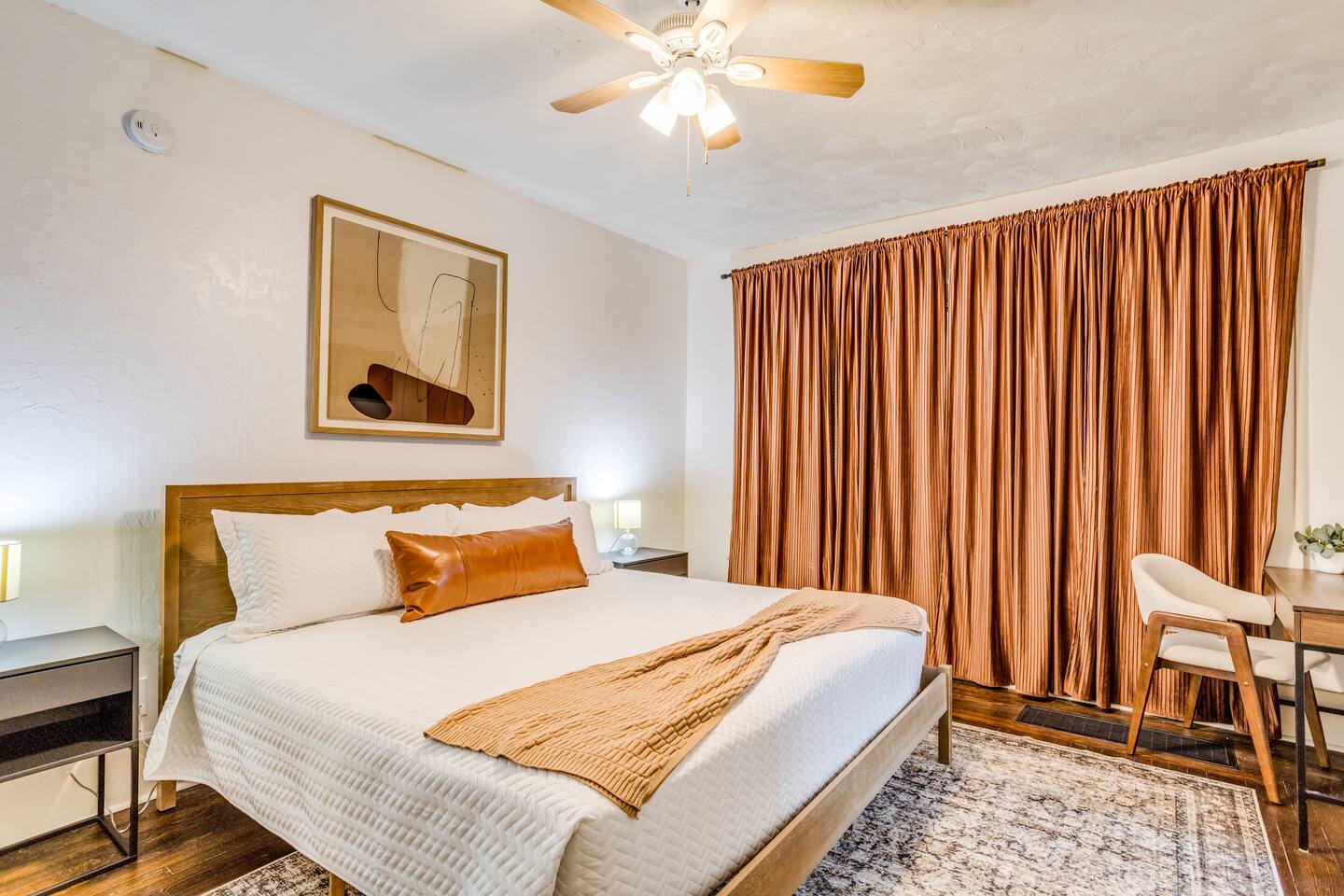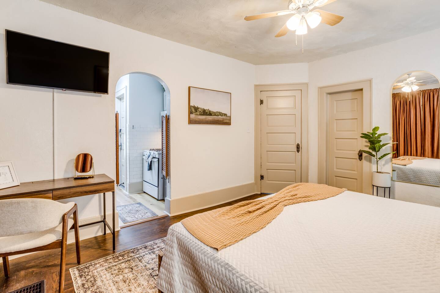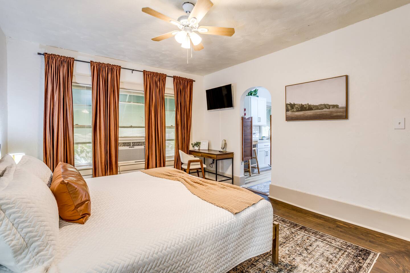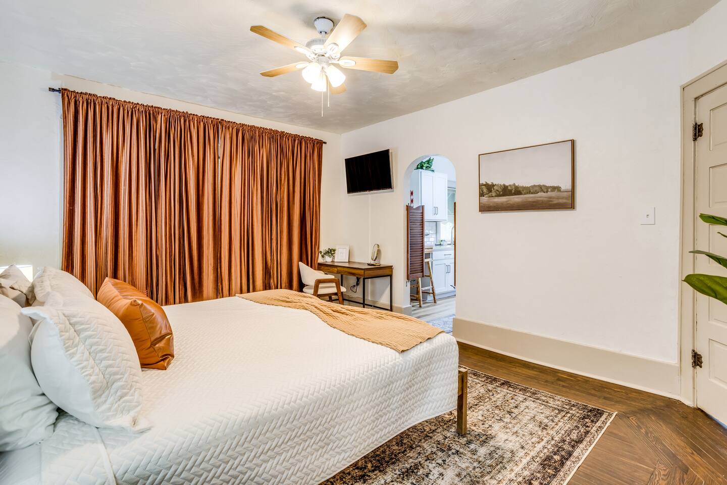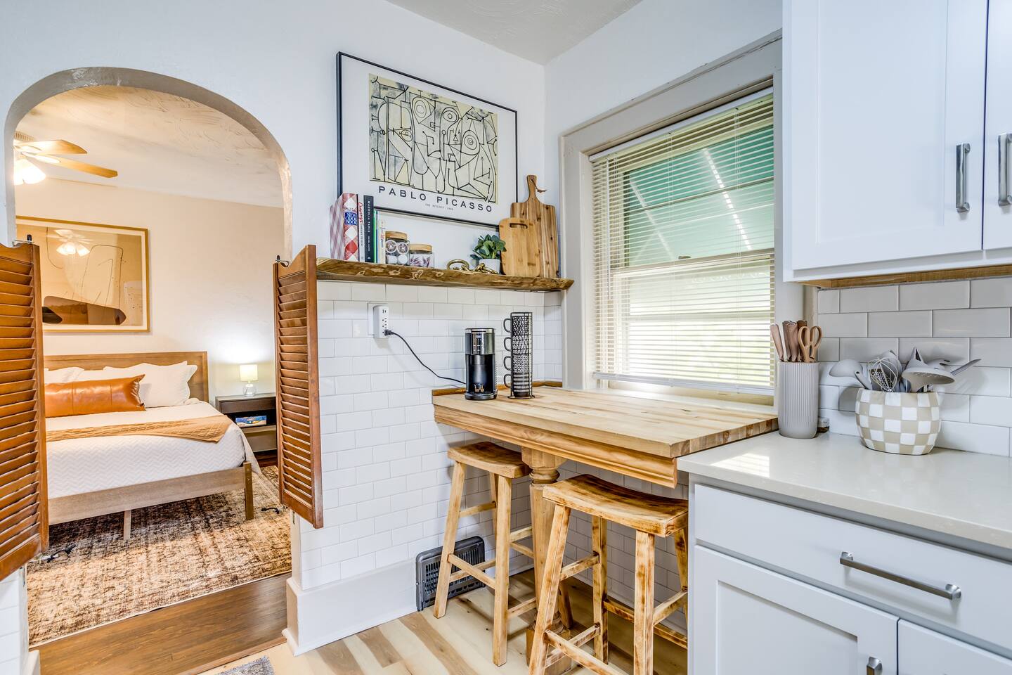 Welcome to where comfort and convenience meets in this beautiful centrally located Delano home. This spacious and well-appointed home boasts a unique, open floor plan with plenty of natural light pouring in from the large windows. The living area features comfortable seating and a flat-screen TV, perfect for relaxing after a long day exploring Wichita. The fully equipped kitchen has everything you need to prepare delicious meals during your stay, including a stove, microwave, refrigerator, and coffee maker. The home has one cozy bedroom with a comfortable king bed and large closet for your belongings. The bathroom includes a shower/bath and all the necessary amenities to make your stay comfortable. You'll love the location of this space, which is situated in a quiet neighborhood just a short drive from downtown Wichita. There are plenty of restaurants, bars, and shops in the area, as well as parks and other outdoor recreational activities. With its comfortable and modern amenities and convenient location, this home is the perfect place for your next trip to Wichita. Book your stay today and experience all that this great city has to offer! PLEASE NOTE: -Guests are not allowed to make a reservation in their city of residence. Guests with a 316 area phone number will be required to submit their drivers license upon approval. If there is a local address on the drivers license, the booking will be cancelled. No exceptions. -We only accept bookings from individuals aged 25 and older. Bookings made by anyone under the age of 25 will not be accepted.