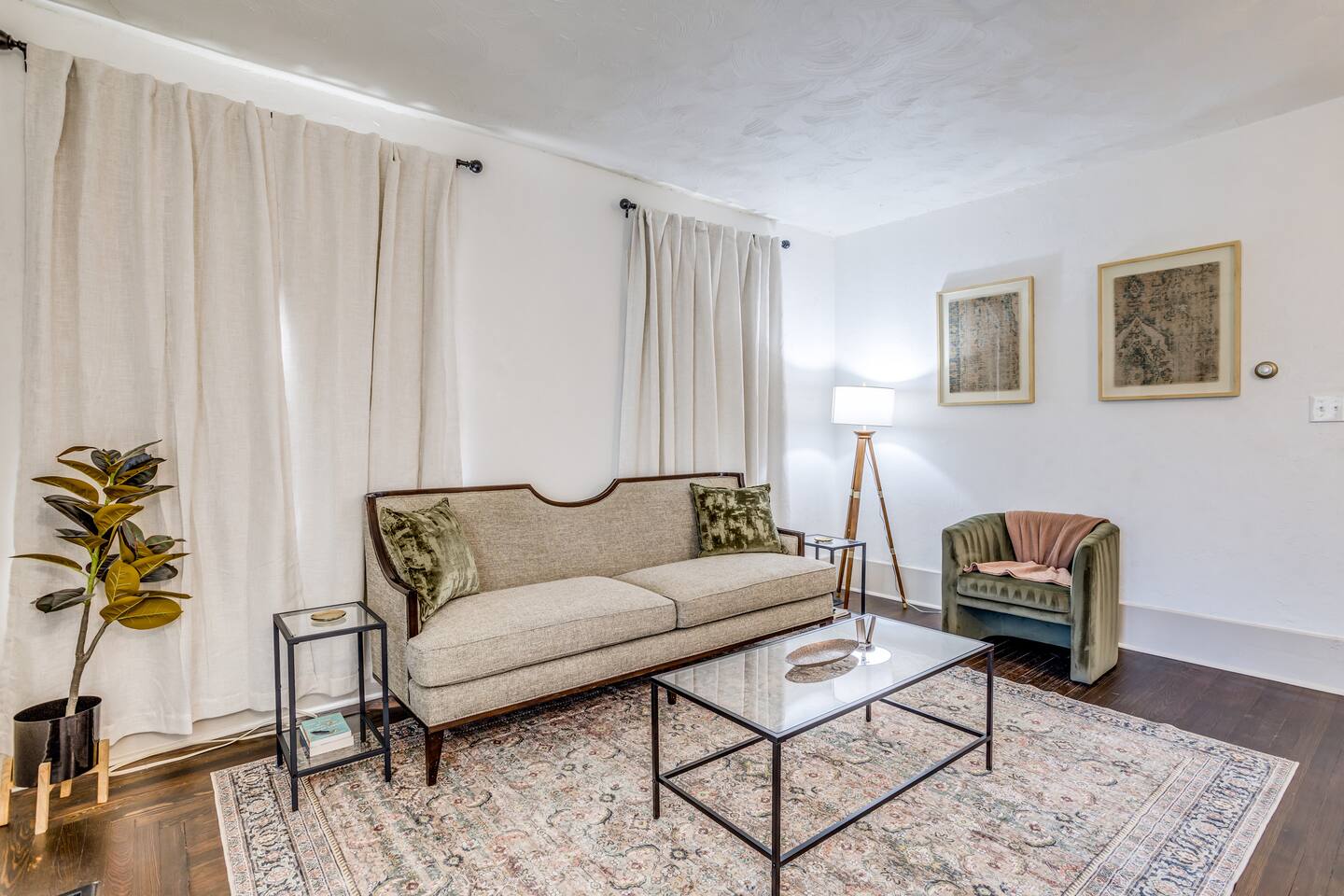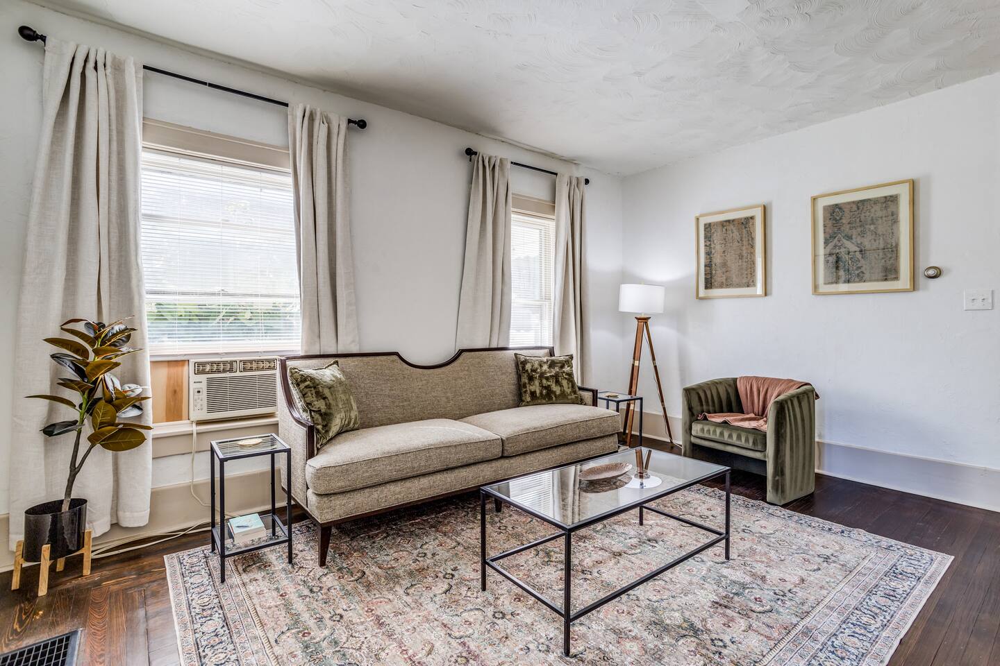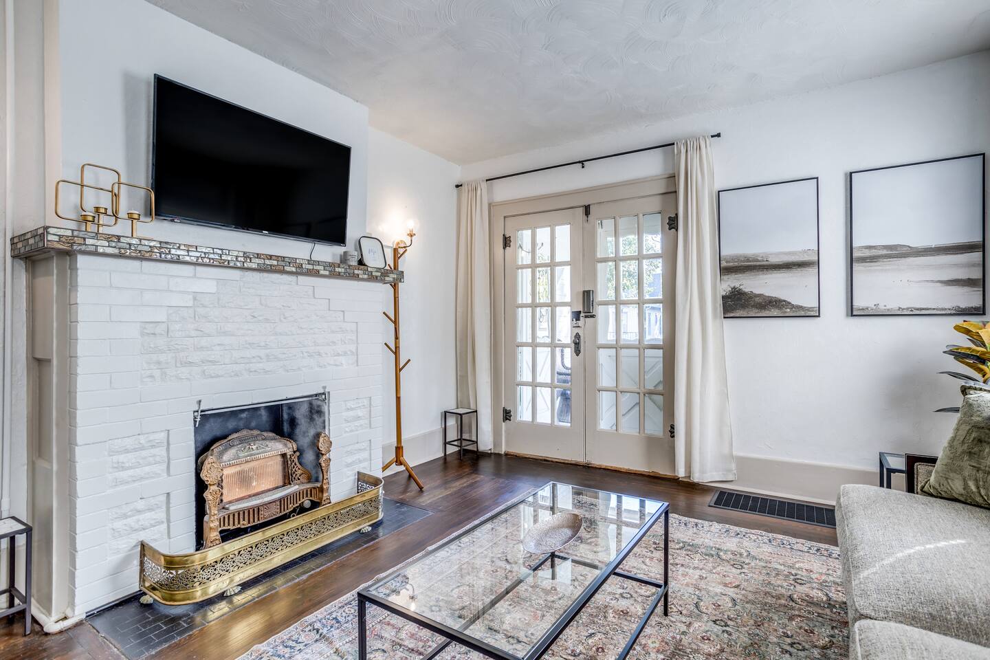 - There is a unit above this unit as well as a unit next door that is also an AirBnB. This has potential to have secondary floor noise at times. - This unit is cooled by 2 window units; 1 in the living room and 1 in the bedroom. Please note, the window unit in the living room does not have a thermostat and will need to be turned on/off according to your needs. The bedroom window unit has a thermostat. - This property has a communal fenced patio/yard. This space is shared among all 4 units. Please note, the grill is also shared. - This property also has a communal laundry room in the basement that is shared with the unit above. - The fireplace is for decorative purposes only. - All smart TV’s allow you to sign into any streaming services that you have access to at home! Just sign in with your current TV provider or username and password and you are ready to watch your favorite shows, sports and movies! Cable service is not provided.