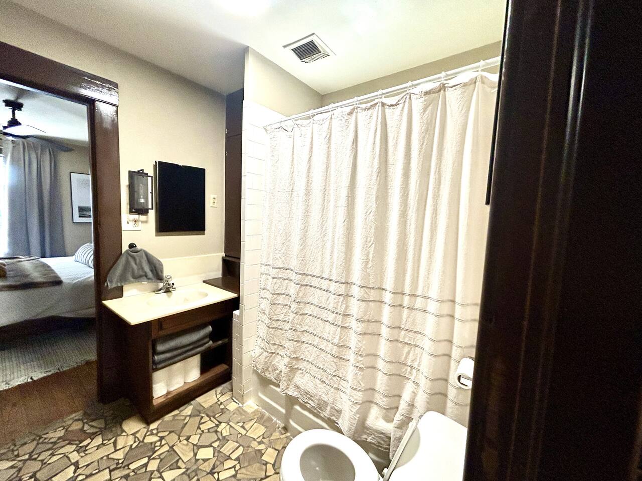 The upstairs bedroom has a window AC unit to help with cooling! This property does not allow pets.