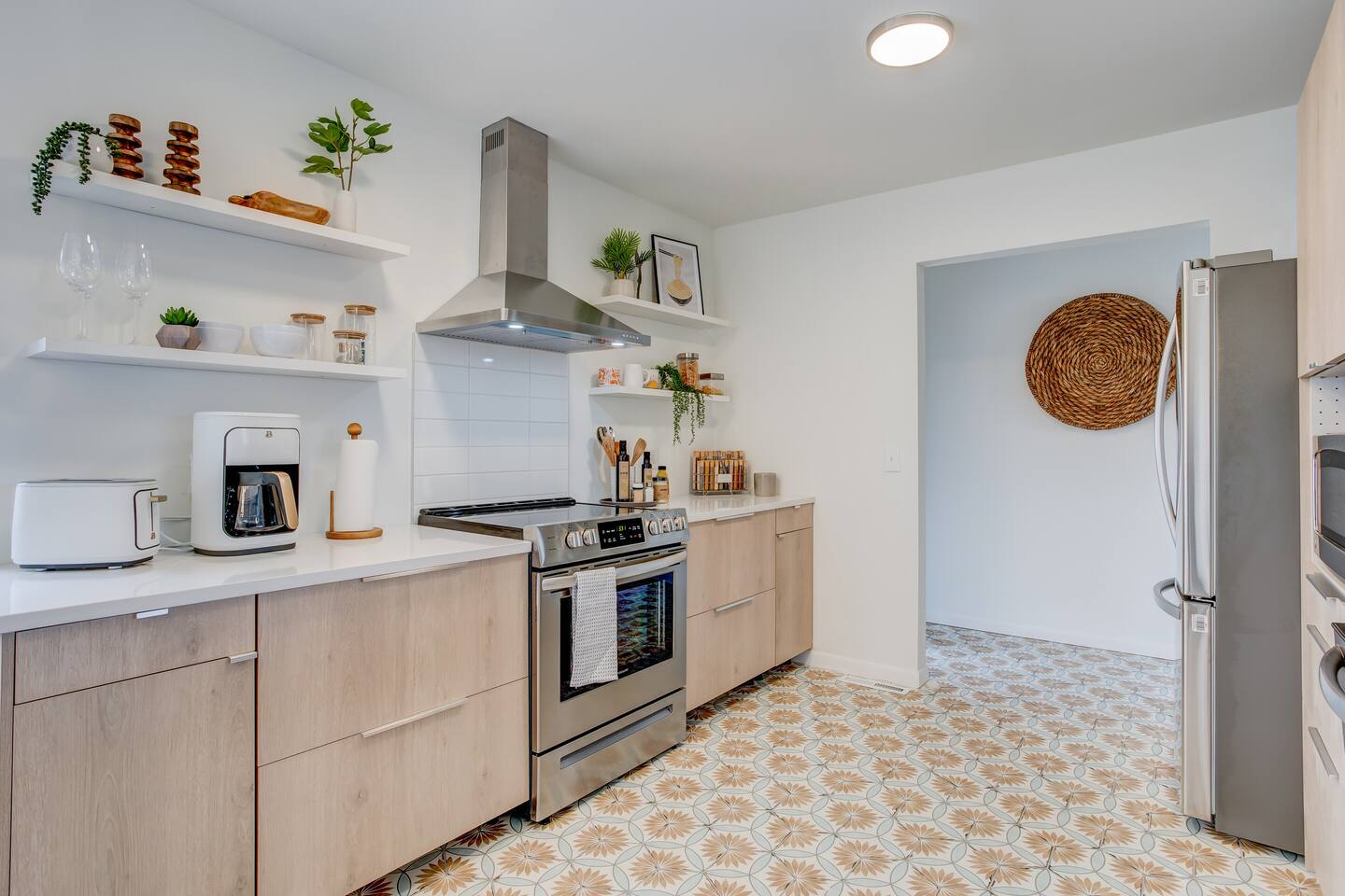 Kick back and relax in a bright and airy mid-century modern space. The tasteful kitchen opens to a light-filled living area with chic furnishings. Large windows offer leafy neighborhood views. There is a patio off of the living room that opens onto a nice-sized fenced-in yard. Minutes from many of Wichita's best shops, restaurants, park's, the airport, and Sedgwick County Zoo, this house offers great convenience!