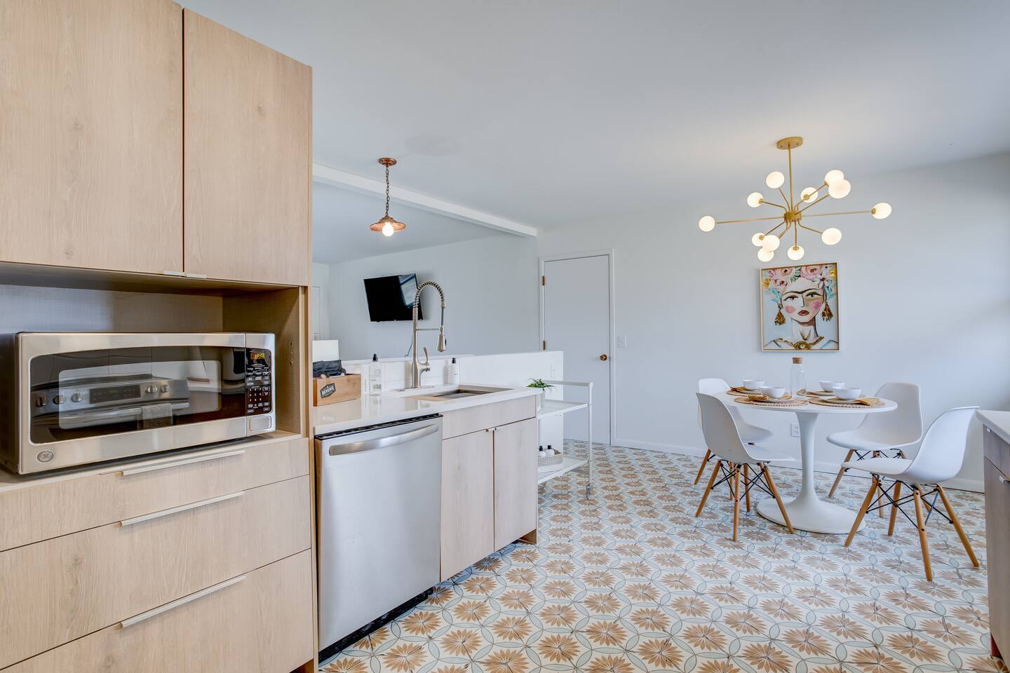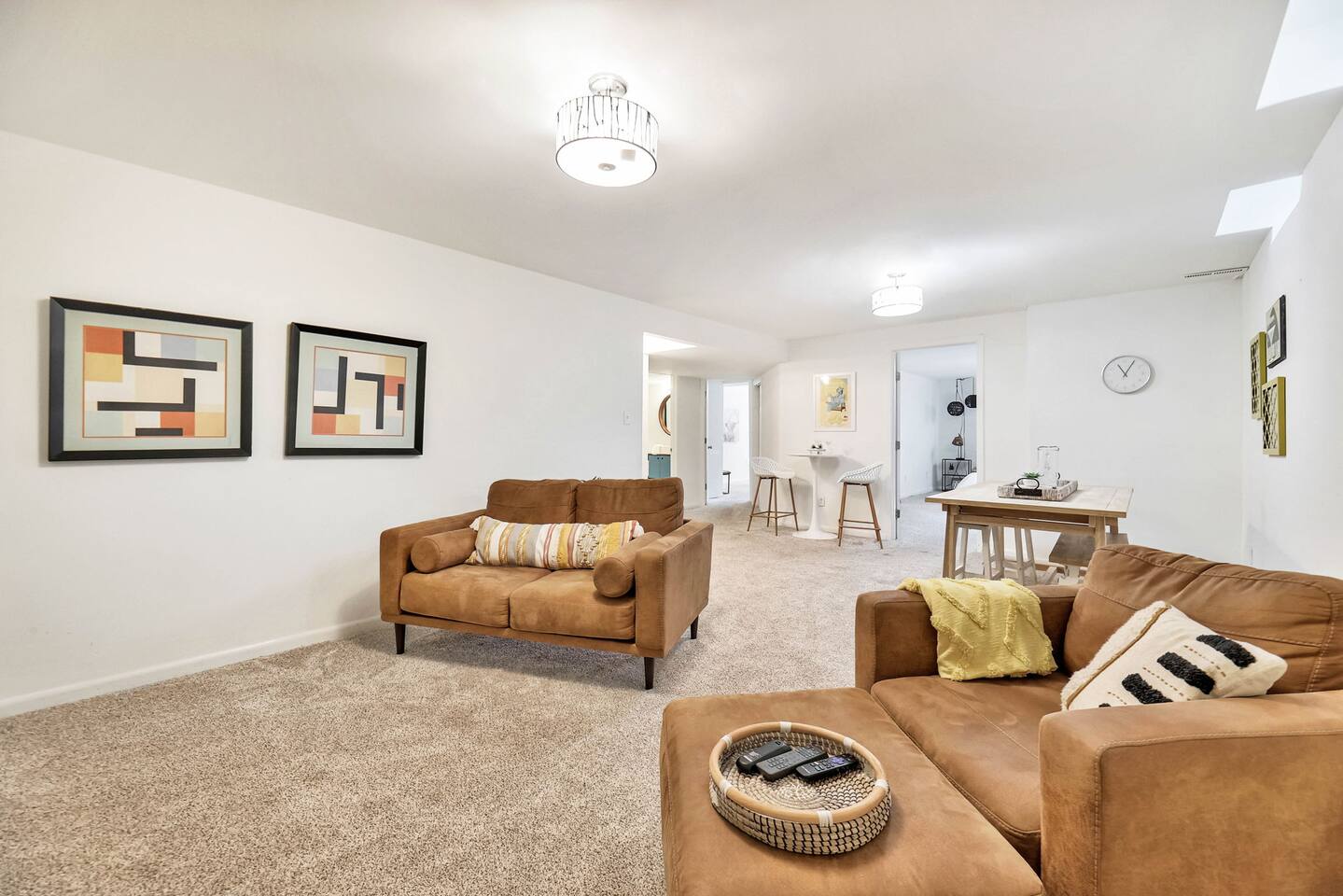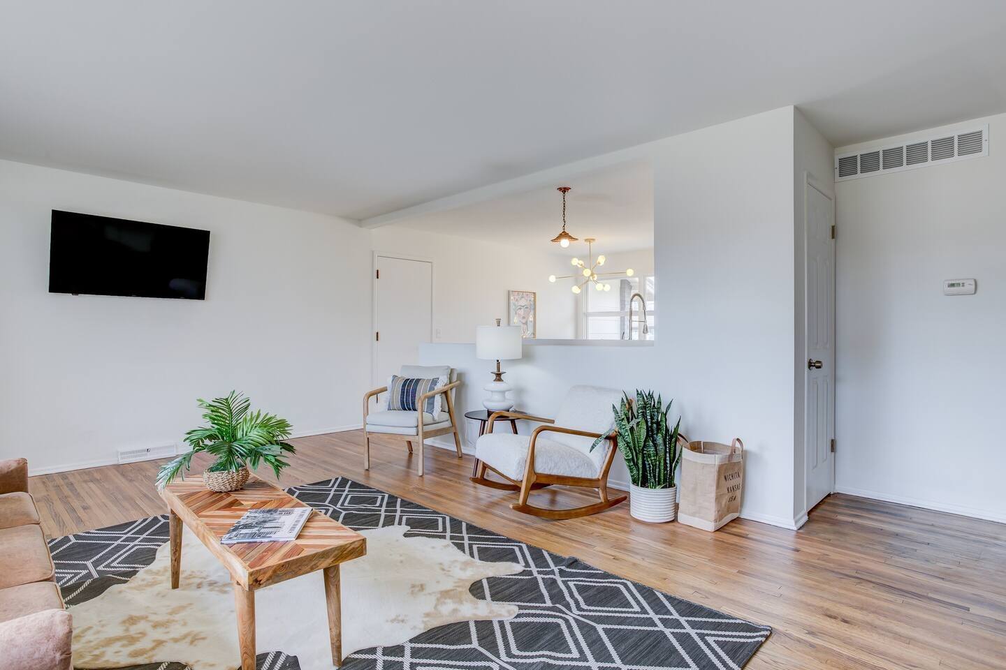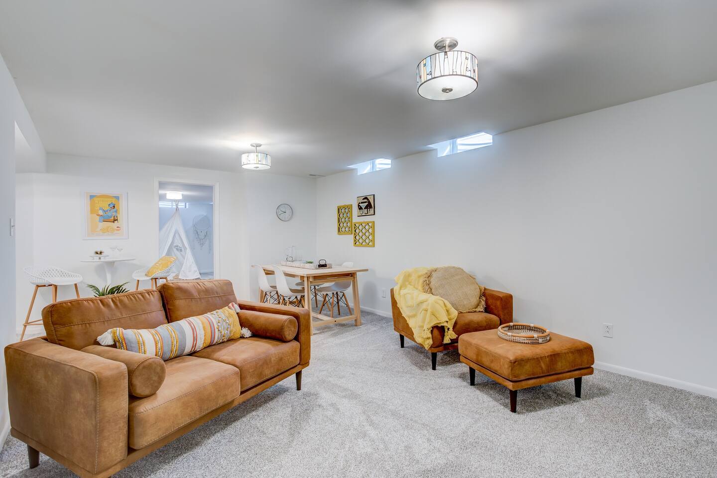Looking to explore Wichita, or stay-in and relax? This is the perfect spot! This glamorous 5 bedroom 3 bathroom home has been completely renovated while keeping original Mid Century details. Cook in the full kitchen or order delivery from nearby restaurants. Soak in the tub, cozy up on the couch with a book or movie, or step outside onto the backyard with an outdoor lounge area. The home is very spacious and has plenty of room for the whole family to spread out and relax! The kitchen is complete with pots, pans, dishes, silverware, coffee maker and blender. We always make sure there is coffee, tea and condiments stocked for your convenience. We have brand new stainless steel appliances complete with a dishwasher and oven with electric range. Don't worry, the fridge also includes an ice maker! Right off the living room are three bedrooms with a new mattresses and luxurious bedding. The primary bedroom is equipped with a comfy Queen bed and en suite bathroom (tub/shower combo). Bedroom 2 has a comfy full bed. The third bedroom on this level has a day bed with trundle. All bedrooms are light and airy and include closets and hangars. The shared bathroom is a full size bathroom with a shower/tub combo. We provide shampoo and conditioner for your convenience. The basement is just as special! A cozy living area equipped with couches, tables & chairs, and a full bathroom (walk in shower). The downstairs bedrooms have comfy Full & Queen size beds. The laundry room is equipped with washer and dryer for you to use as needed. Responsible pet owners are welcome! It’s just more fun traveling with the whole family. The backyard is spacious and fully fenced in. Please let us know about your dog when booking. We ask that you kennel your dog when unattended and to please keep them off beds and furniture. You can expect a clean, fully equipped space, and responsive communication from your host. PLEASE NOTE: -Guests are not allowed to make a reservation in their city of residence. Guests with a 316 area phone number will be required to submit their drivers license upon approval. If there is a local address on the drivers license, the booking will be cancelled. No exceptions. -We only accept bookings from individuals aged 25 and older. Bookings made by anyone under the age of 25 will not be accepted. We can't wait to host you!