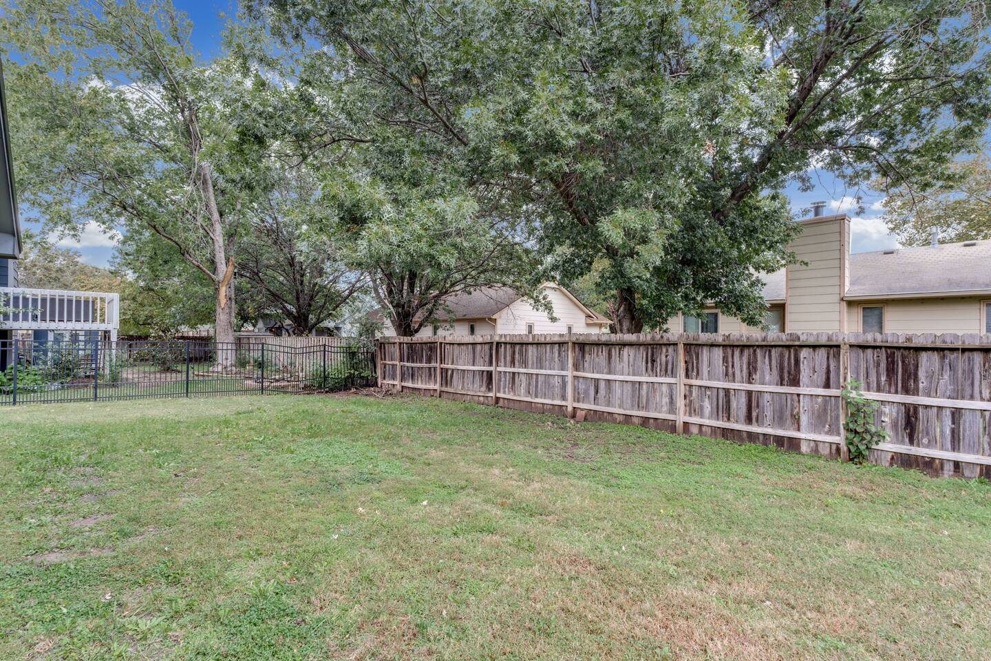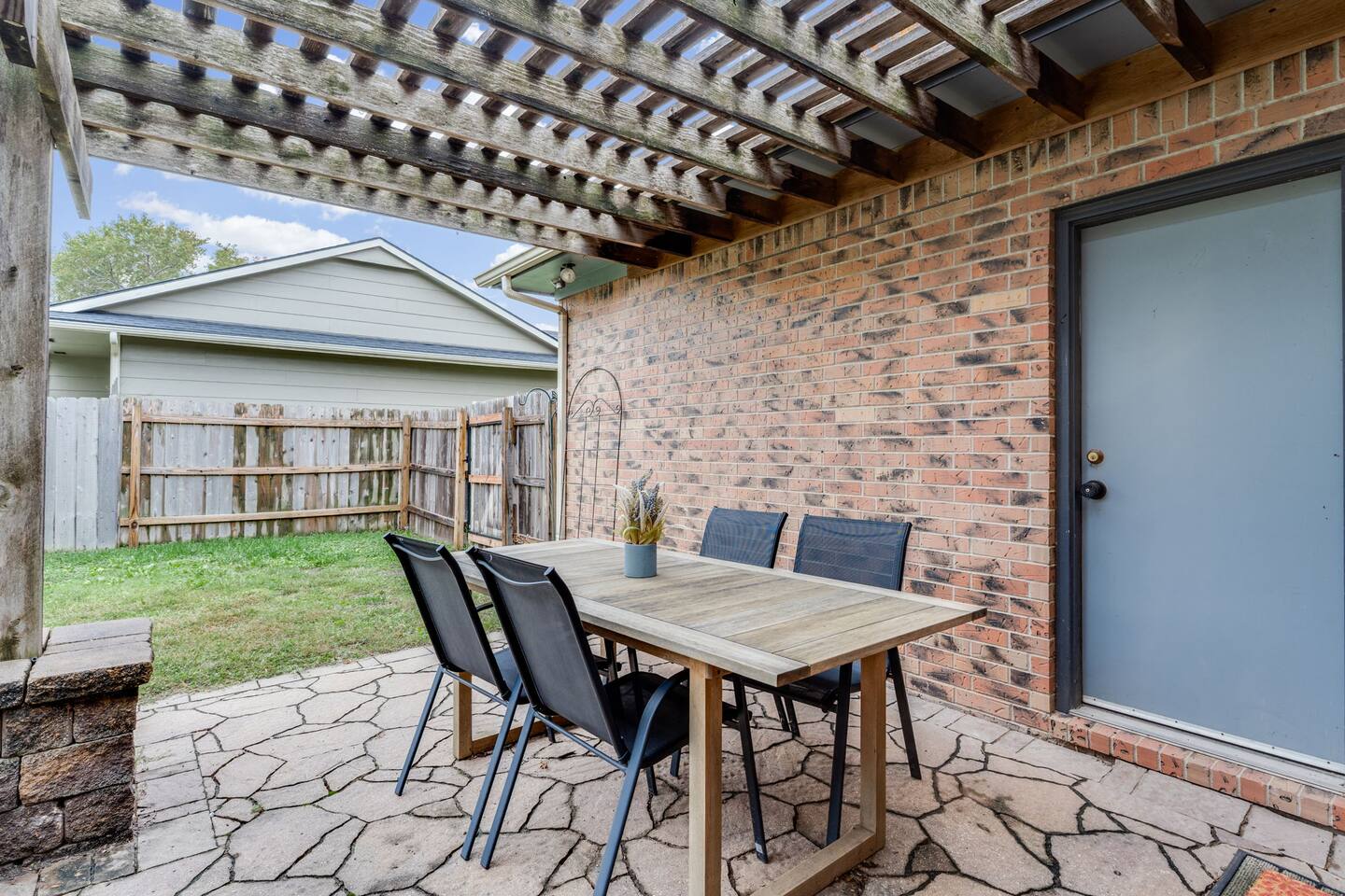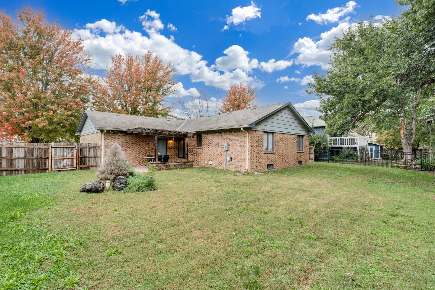 Entire home • Quiet residential area Fully fenced backyard + pergola Dedicated workspace + fast Wi-Fi 3 TVs (easy streaming) Walk-in shower and bath/tub combo Baby gate, pack-’n-play, toddler toys Pet-friendly Washer/dryer • Easy self check-in Kitchen: - Keurig Coffee Maker - Drip Coffee Maker - Electric Tea Kettle - Blender - Electric Mixer - Crock Pot - Toaster (2slice) Dining room is located just off the kitchen with seating for 6. Additional bar seating (2) is also available! Living room has enough seating for the whole family! We've provided a 50" Smart TV & board games. Just off the living room is a desk should you need to work during your stay. BEDROOM 1: (primary) - Luxury Linens - Window Coverings - King Bed - Closet for Clothes - Ceiling Fan - Full-length mirror - Sound Machine - Pack N Play - En Suite Bathroom - TV EN SUITE BATHROOM - Shower - Hand soap - Shampoo, Conditioner & Body Wash - Towels BEDROOM 2: - Luxury Linens - King Bed - Light Filtering Window Coverings - Closet for Clothes - Full-length mirror - Desk - TV BEDROOM 3: - Luxury Linens - Queen Bed - Light Filtering Window Coverings - Closet for Clothes BATHROOM (2) - Tub/Shower Combo - Hand soap - Shampoo, Conditioner & Body Wash - Towels There is a patio located off of the dining room that opens onto a nice-sized fenced-in yard. Responsible pet owners are welcome! Please let us know about your dog when booking. We ask that you kennel your dog when unattended and to please keep them off beds and furniture. We have a Pack N' Play available if needed! We do not provide sheets for the Pack N' Play. The smart TV allow you to sign into any streaming services that you have access to at home! Just sign in with your current TV provider or username and password and you are ready to watch your favorite shows, sports and movies! Cable service is not provided. You can expect a clean, fully equipped space, and responsive communication from your host. PLEASE NOTE: -Guests are not allowed to make a reservation in their city of residence. Guests with a 316 area phone number will be required to submit their drivers license upon approval. If there is a local address on the drivers license, the booking will be cancelled. No exceptions. -We only accept bookings from individuals aged 25 and older. Bookings made by anyone under the age of 25 will not be accepted.