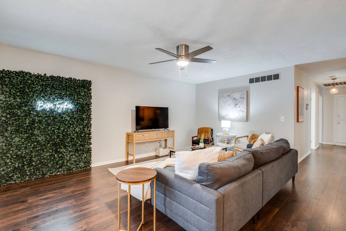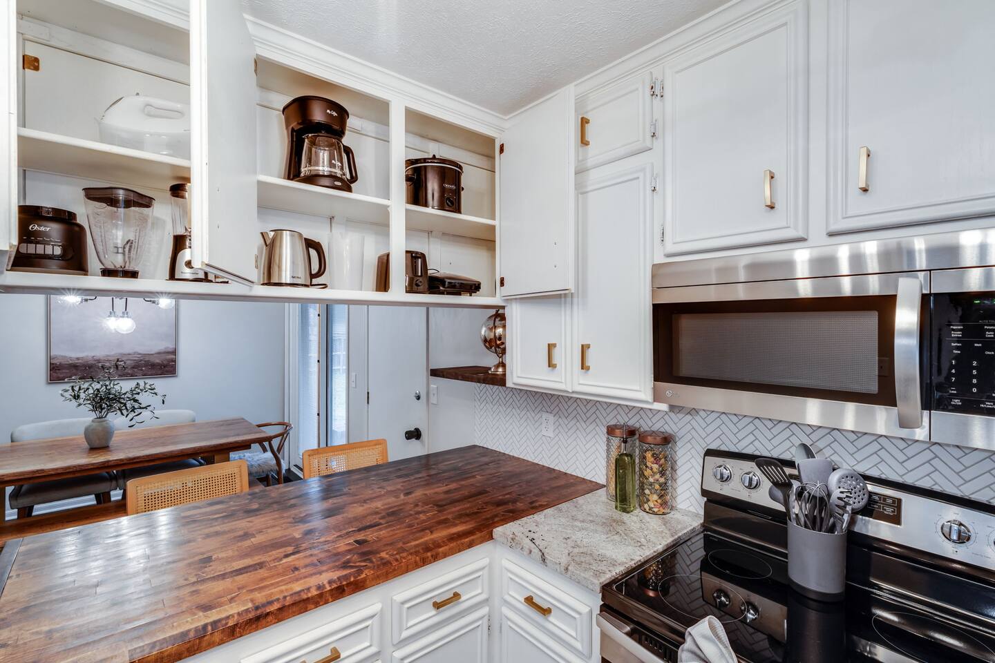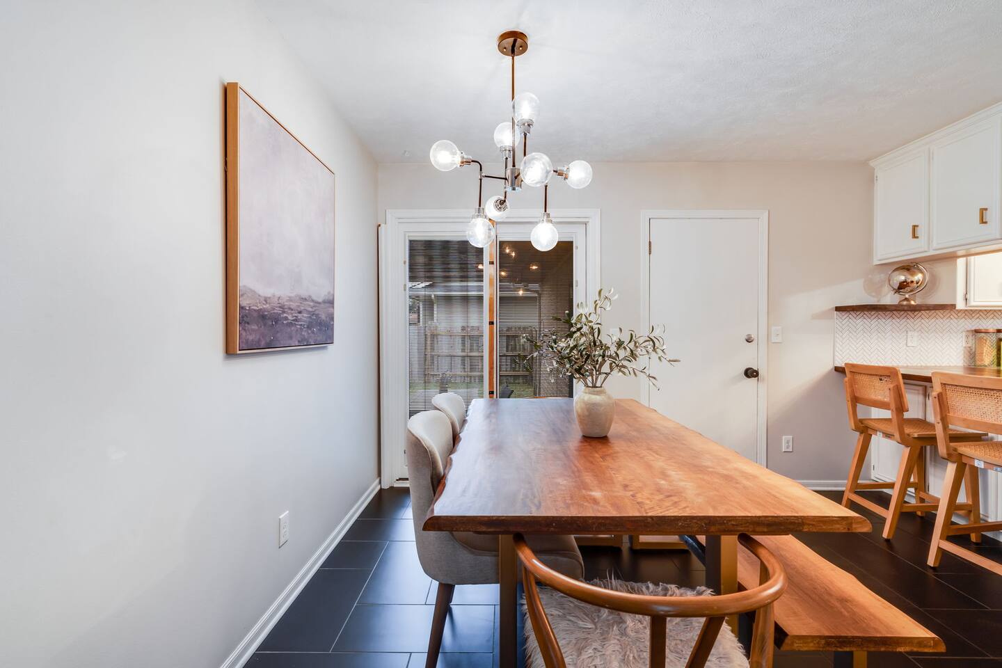 Entire home • Quiet residential area Fully fenced backyard + pergola Dedicated workspace + fast Wi-Fi 3 TVs (easy streaming) Walk-in shower and bath/tub combo Baby gate, pack-’n-play, toddler toys Pet-friendly Washer/dryer • Easy self check-in Kitchen: - Keurig Coffee Maker - Drip Coffee Maker - Electric Tea Kettle - Blender - Electric Mixer - Crock Pot - Toaster (2slice) Dining room is located just off the kitchen with seating for 6. Additional bar seating (2) is also available! Living room has enough seating for the whole family! We've provided a 50" Smart TV & board games. Just off the living room is a desk should you need to work during your stay. BEDROOM 1: (primary) - Luxury Linens - Window Coverings - King Bed - Closet for Clothes - Ceiling Fan - Full-length mirror - Sound Machine - Pack N Play - En Suite Bathroom - TV EN SUITE BATHROOM - Shower - Hand soap - Shampoo, Conditioner & Body Wash - Towels BEDROOM 2: - Luxury Linens - King Bed - Light Filtering Window Coverings - Closet for Clothes - Full-length mirror - Desk - TV BEDROOM 3: - Luxury Linens - Queen Bed - Light Filtering Window Coverings - Closet for Clothes BATHROOM (2) - Tub/Shower Combo - Hand soap - Shampoo, Conditioner & Body Wash - Towels There is a patio located off of the dining room that opens onto a nice-sized fenced-in yard. Responsible pet owners are welcome! Please let us know about your dog when booking. We ask that you kennel your dog when unattended and to please keep them off beds and furniture. We have a Pack N' Play available if needed! We do not provide sheets for the Pack N' Play. The smart TV allow you to sign into any streaming services that you have access to at home! Just sign in with your current TV provider or username and password and you are ready to watch your favorite shows, sports and movies! Cable service is not provided. You can expect a clean, fully equipped space, and responsive communication from your host. PLEASE NOTE: -Guests are not allowed to make a reservation in their city of residence. Guests with a 316 area phone number will be required to submit their drivers license upon approval. If there is a local address on the drivers license, the booking will be cancelled. No exceptions. -We only accept bookings from individuals aged 25 and older. Bookings made by anyone under the age of 25 will not be accepted.