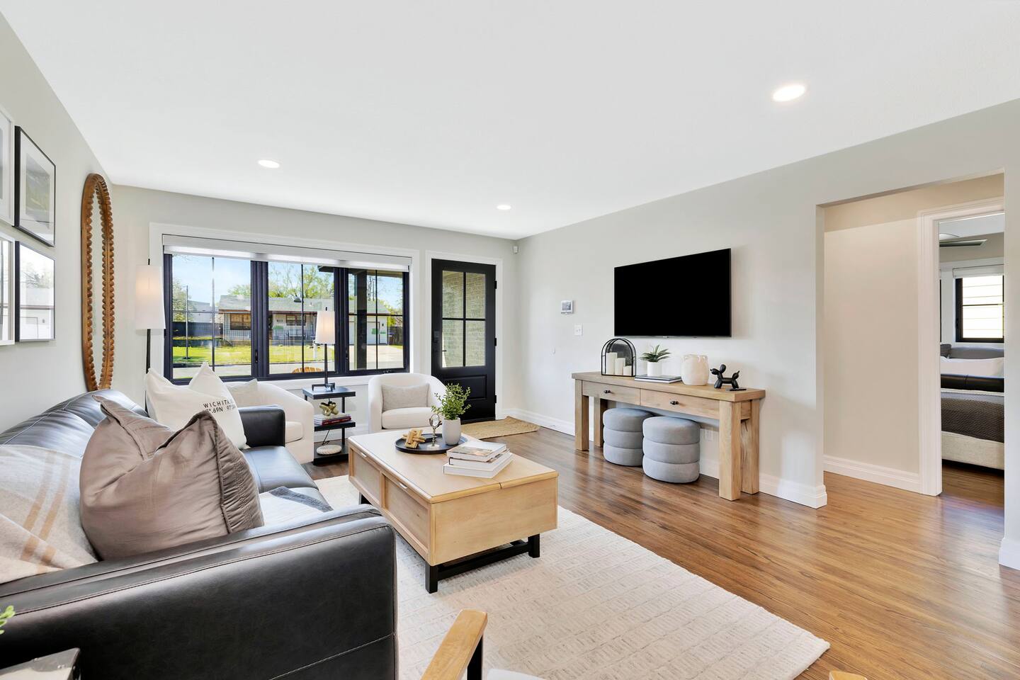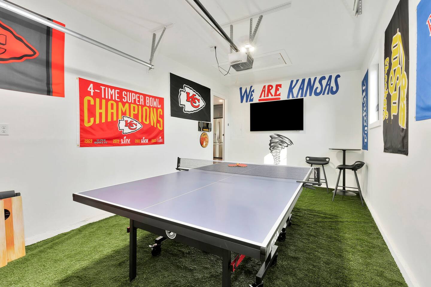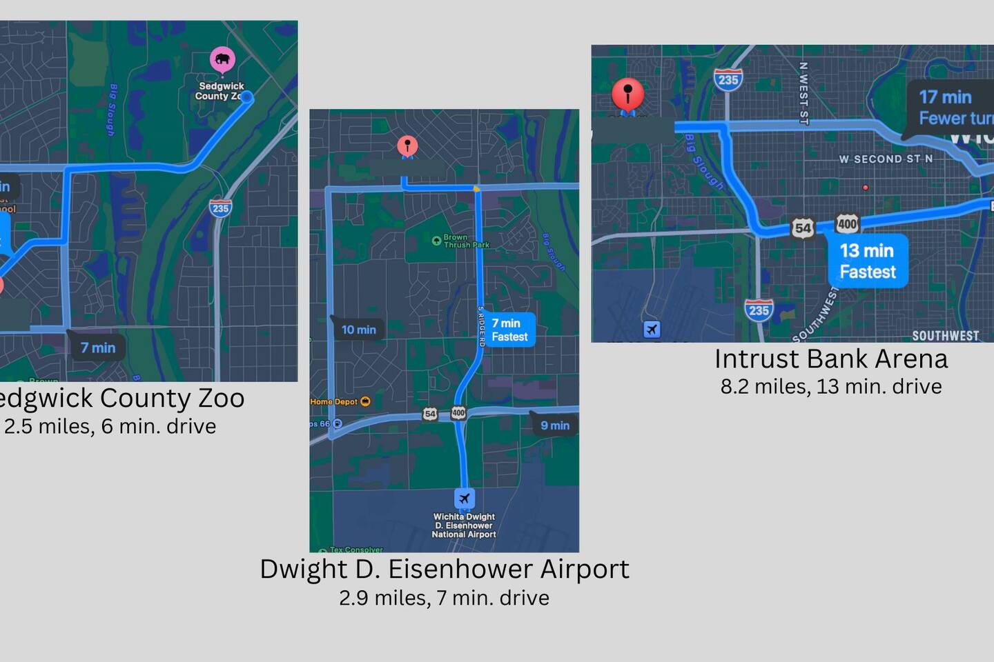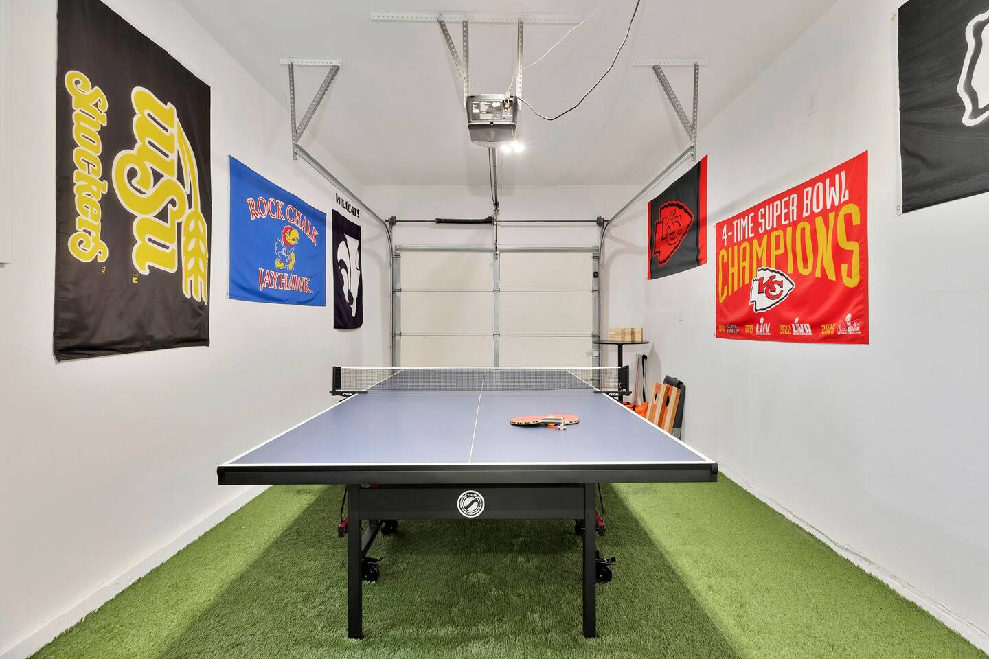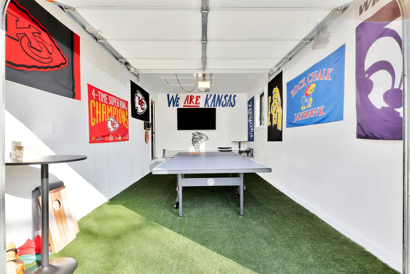 The fully renovated kitchen is the heart of the home. Updated with sleek countertops, modern appliances, and plenty of space for meal prep, this kitchen is fully stocked with everything you could to whip up a home cooked meal. KITCHEN - Stainless Steel appliances - Blender - Keurig coffee pot - Tea infuser pot The fun doesn’t stop inside! The turfed game room features a ping pong table, corn hole, Jenga, and a large TV, offering hours of entertainment for guests of all ages. Step out back to your own private sanctuary. The outdoor patio is equipped with comfortable seating and a grill, making it the perfect spot for relaxing and enjoying the peaceful surroundings. BEDROOM 1 - Blackout window coverings - King mattress - Closet - Luggage Rack - TV BEDROOM 2 - Blackout window coverings - King mattresses - Closet - Luggage Rack - Dresser BEDROOM 3 - Blackout window coverings - King mattresses - Closet - Luggage Racks - Pack N Play - Iron & Ironing Board FULL BATHROOM - Walk in shower - Hand soap - Shampoo, conditioner, & body wash - Plush towels - Hair dryer LAUNDRY/HALF BATH - Washer and Dryer - Laundry Pods - First Aid Kit We welcome you to come and enjoy this home as much as we do! PLEASE NOTE: -Guests are not allowed to make a reservation in their city of residence. Guests with a 316 area phone number will be required to submit their drivers license upon approval. If there is a local address on the drivers license, the booking will be cancelled. No exceptions. -We only accept bookings from individuals aged 25 and older. Bookings made by anyone under the age of 25 will not be accepted. -We have a security system in the property located by the front door. This is NOT a security camera, only security system.