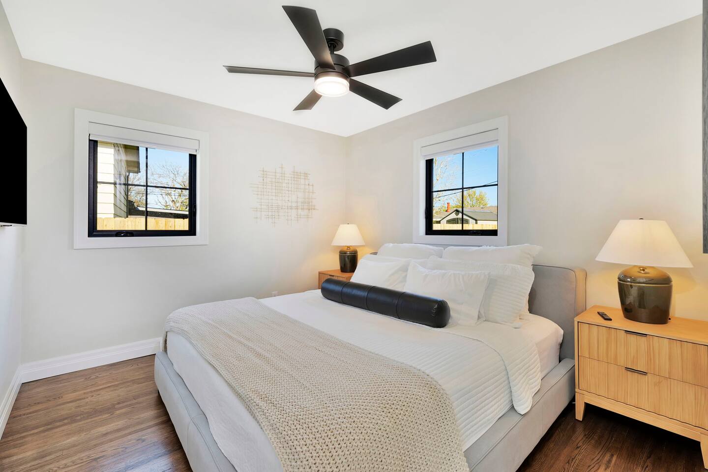Step into style and comfort at this thoughtfully designed home, where modern organic touches meet relaxed Midwestern charm. Ideal for families, small groups, or work travelers, this single-level home offers an open-concept living, dining, and kitchen area perfect for gathering. Enjoy the garage-style game room with ping pong, cornhole, Jenga and more! Step outside to a private backyard offering a gas grill and space to relax—all in a quiet neighborhood near restaurants and local attractions.