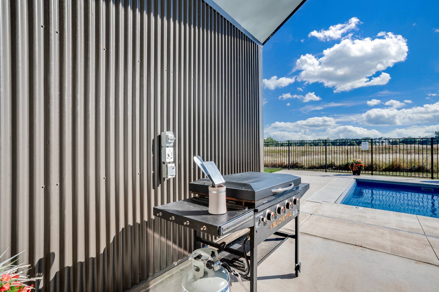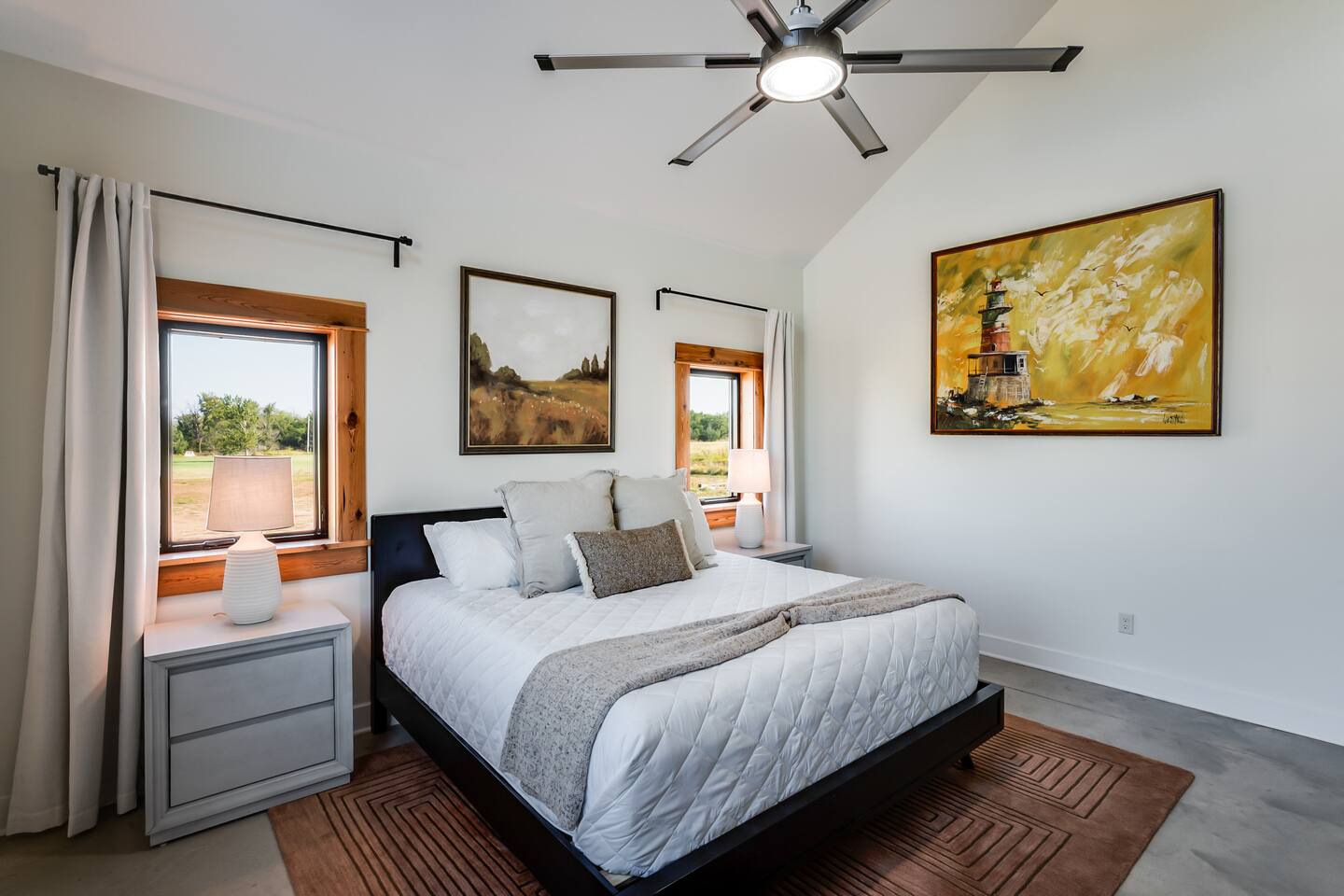 Built in 2024, this modern retreat is just minutes from Cheney Lake. Perfect for families and groups, it features a private pool, relaxing hot tub, spacious open floor plan, and cozy bedrooms with an open loft. Cook on the Blackstone grill, enjoy sunsets over wildflower fields, and spot deer in the mornings. A peaceful getaway with space to gather, unwind, and make lasting memories.