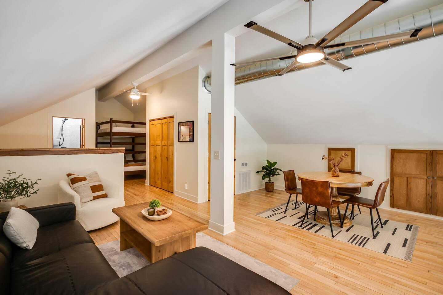 The garage is not for available for guests use. This property has a loft and spiral staircase. Please make note of this when booking with children.