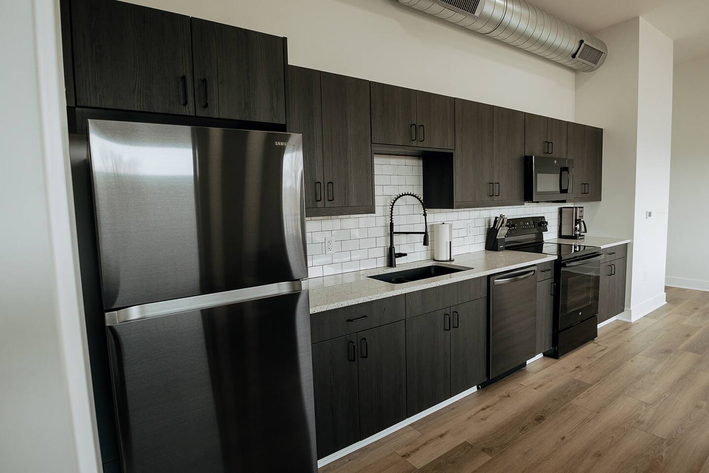 St Francis is the up and coming street in downtown Wichita. Our closest recognizable neighbor is Intrust Bank Arena, and we are just a couple blocks away from some vibin' locally owned restaurants, a plant shop, and breweries. Our brand new event venue below the loft hosts small gatherings, and we have a large industrial event venue across the street.