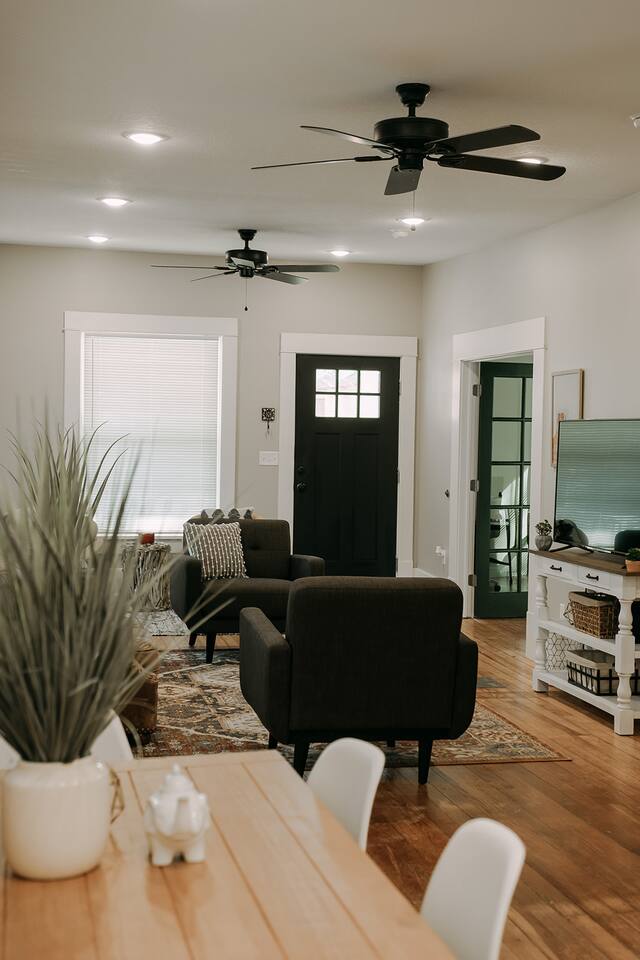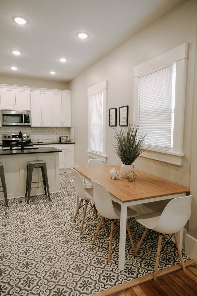 Step into our 3-bedroom, 3-bathroom home in a safe, quiet neighborhood! This home features a spacious layout, a dedicated laundry room, and a fully fenced yard—perfect for pets, kids, or entertaining. Enjoy comfortable living with modern amenities and plenty of space inside and out. Here why you'll love it! KITCHEN - Stainless steel appliances - Blender - Hot water kettle - Drip coffee pot - French press - Pour over coffee - Island seating (2) + Dining table (4) BEDROOM 1 - Queen mattress - Closet - Ceiling fan - TV - Full length mirror BEDROOM 2 - Bunk bed - Additional 3rd bed - twin - Closet - Ceiling fan - TV BEDROOM 3 - UPSTAIRS - Queen mattress - Ceiling fan - Full length mirror FULL BATHROOM - 1 - Shower/Tub combo - Hand soap - Shampoo, conditioner, & body wash - Plush towels - Hair dryer FULL BATHROOM - 2 - Shower/Tub combo - Hand soap - Shampoo, conditioner, & body wash - Plush towels - Hair dryer FULL BATHROOM - UPSTAIRS - Walk in shower - Standing tub - Hand soap - Shampoo, conditioner, & body wash - Plush towels We welcome you to come and enjoy this home as much as we do! PLEASE NOTE: -Guests are not allowed to make a reservation in their city of residence. Guests with a 316 area phone number will be required to submit their drivers license upon approval. If there is a local address on the drivers license, the booking will be cancelled. No exceptions. -We only accept bookings from individuals aged 25 and older. Bookings made by anyone under the age of 25 will not be accepted.