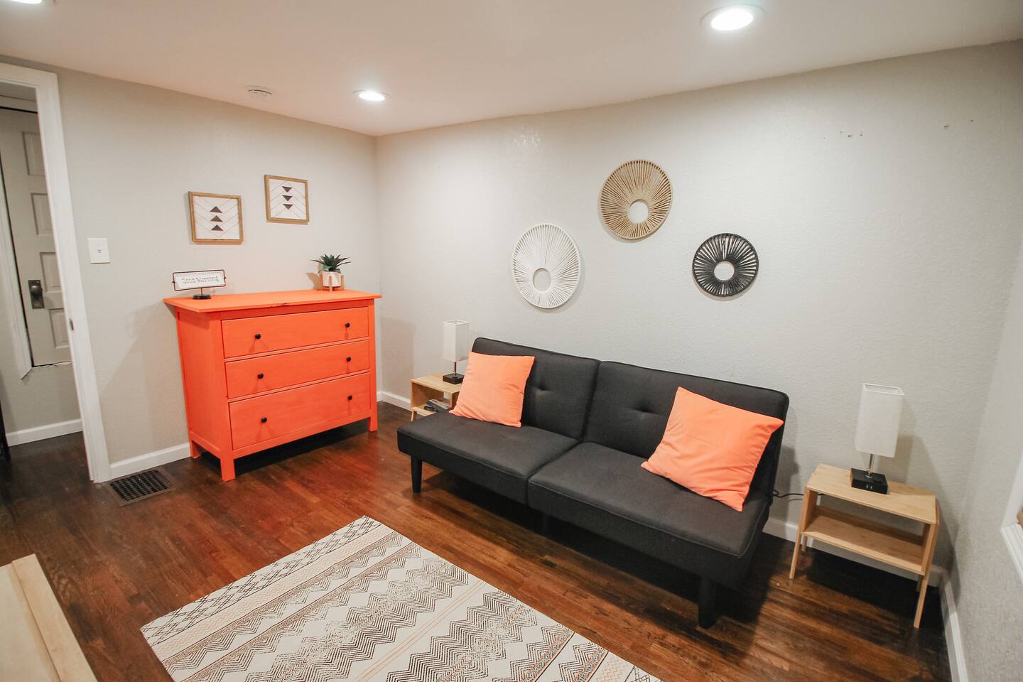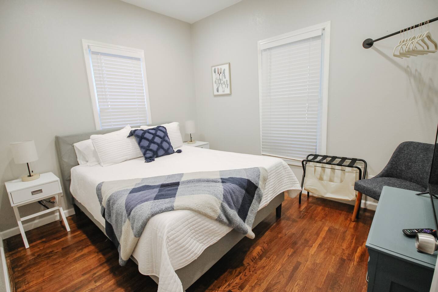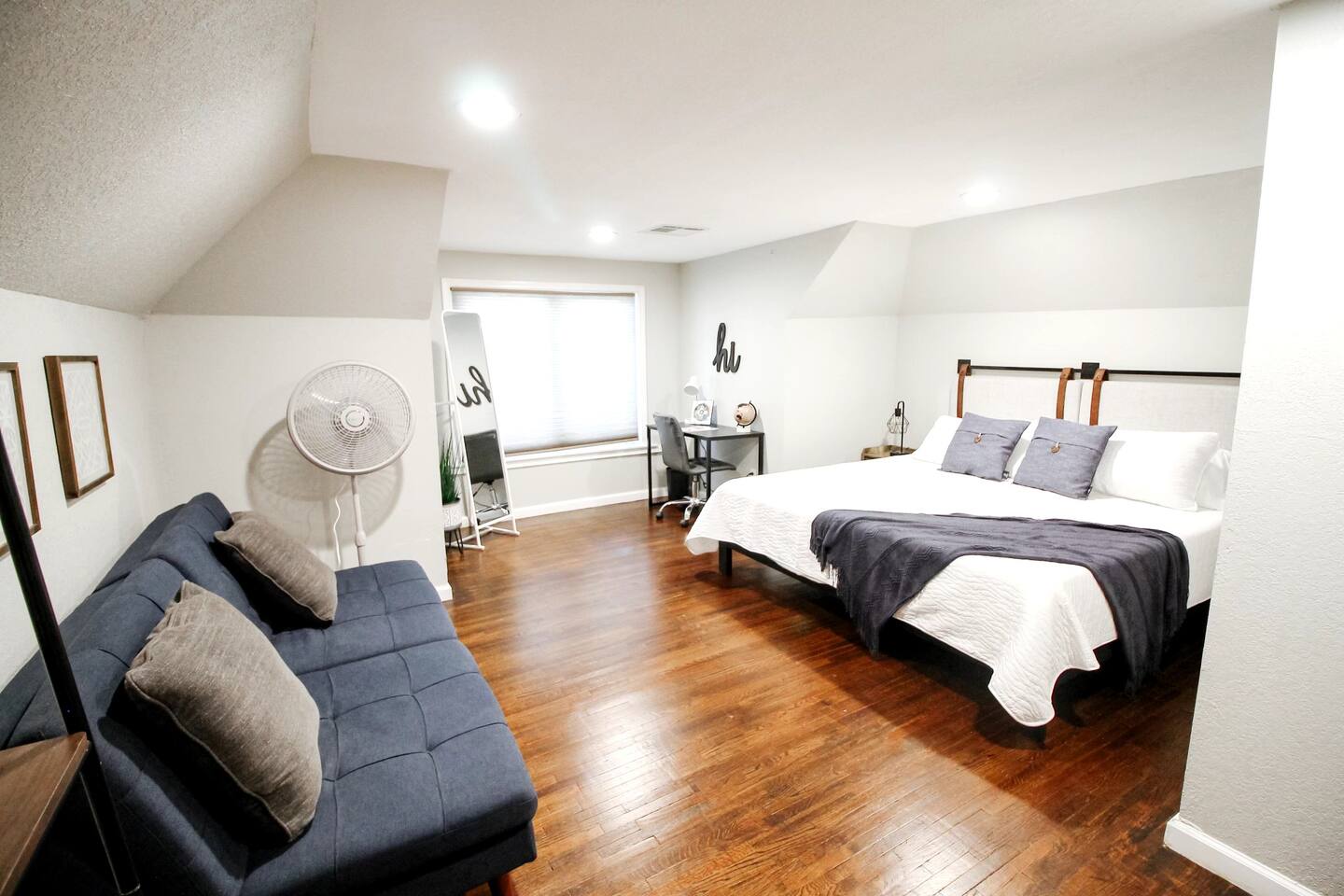 Enter the home through the large covered porch. The perfect place to enjoy a cup of coffee in the morning! Relax on the large sectional in the living room and enjoy the flat screen smart TV. Gather around the dining room table for a meal with your friends or family. The game room is fully stocked and ready to play! Enjoy Pac Man, Foosball, Darts, and a wide selection of board games. Fun for the whole family! All smart TV’s allow you to sign into any streaming services that you have access to at home! Just sign in with your current TV provider or username and password and you are ready to watch your favorite shows, sports and movies! Cable service is not provided. The kitchen is complete with pots, pans, dishes, silverware, single cup & drip coffee maker, dishwasher and oven with electric range. Laundry room equipped with washer, dryer and iron is located just off the kitchen. BEDROOM 1: - Located on Main Floor - Luxury Linens - Window Coverings - Queen Bed - Dresser & Hanging Rack for Clothes - Fan & Sound Machine - Full-length mirror - TV BEDROOM 2: - Luxury Linens - King Bed - Blackout Window Coverings - Dresser & Hanging Rack for Clothes - Fan & Sound Machine - Full-length mirror - TV BEDROOM 3: - Luxury Linens - Queen Bed - Light Filtering Window Coverings - Dresser & Hanging Rack for Clothes - Fan & Sound Machine - Full-length mirror BEDROOM 4: - Luxury Linens - King Bed - Futon Bed - Light Filtering Window Coverings - Hanging Rack for Clothes - Fan & Sound Machine - Desk & Chair - Full-length mirror BEDROOM 5: - Luxury Linens - Window Coverings - Full-length mirror - Futon Bed - Dresser - TV & Nintendo - Fan & Sound Machine GAME ROOM: - Pac-Man, Galaga, Galaxian, Mappy, DigDug, Rompers & More! - Foosball - Darts - Board Games BATHROOMS (2) - Walk-in shower - Hand soap - Shampoo, Conditioner & Body Wash - Towels There is a deck located off of the kitchen that opens onto a nice-sized fenced-in yard. Responsible pet owners are welcome! It’s more fun traveling with the whole family. Please let us know about your dog when booking. We ask that you kennel your dog when unattended and to please keep them off beds and furniture. You can expect a clean, fully equipped space, and responsive communication from your host. PLEASE NOTE: -Guests are not allowed to make a reservation in their city of residence. Guests with a 316 area phone number will be required to submit their drivers license upon approval. If there is a local address on the drivers license, the booking will be cancelled. No exceptions. -We only accept bookings from individuals aged 25 and older. Bookings made by anyone under the age of 25 will not be accepted. We can't wait to host you!