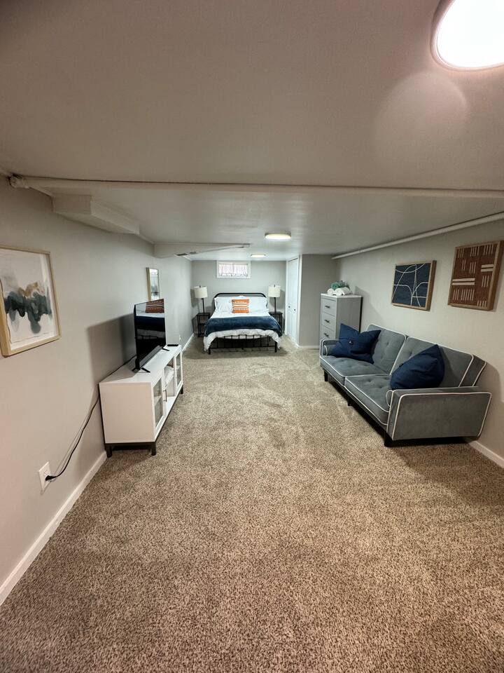 Clean, cozy, convenient, renovated and bright! The space is designed to offer comfort and convenience for guests whether they are visiting Wichita for work, leisure, or a little bit of both. The living area has a large TV and comfortable sectional - the perfect place for guests to unwind! Living room opens to the dining room where there is a large table to enjoy meals (seating for 4). All smart TV’s allow you to sign into any streaming services that you have access to at home! Just sign in with your current TV provider or username and password and you are ready to watch your favorite shows, sports and movies! Cable service is not provided. The kitchen is equipped with all of the basics for you to cook breakfast, lunch, or dinner. There is a full-size fridge/freezer, toaster, Keurig, electric range, oven and microwave. Right off the living room are two bedrooms with a new mattresses and luxurious bedding. One bedroom has a comfy Queen bed, the other equipped with a comfy King bed! Located between the two bedrooms is the bathroom. It's a full size bathroom with a shower/tub combo. The basement also has an extra bedroom room if the extra space is needed! A private work space is also provided if you are working from home. We are equipped with high speed WIFI. Also located in the basement is an in unit washer and dryer! Responsible pet owners are welcome! It’s just more fun traveling with the whole family. The backyard is spacious and fully fenced in. Please let us know about your dog when booking. We ask that you kennel your dog when unattended. Whether you're traveling for business or leisure, we are confident our place will provide you with a relaxing and enjoyable visit in Wichita. PLEASE NOTE: -Guests are not allowed to make a reservation in their city of residence. Guests with a 316 area phone number will be required to submit their drivers license upon approval. If there is a local address on the drivers license, the booking will be cancelled. No exceptions. -We only accept bookings from individuals aged 25 and older. Bookings made by anyone under the age of 25 will not be accepted. We can't wait to host you!