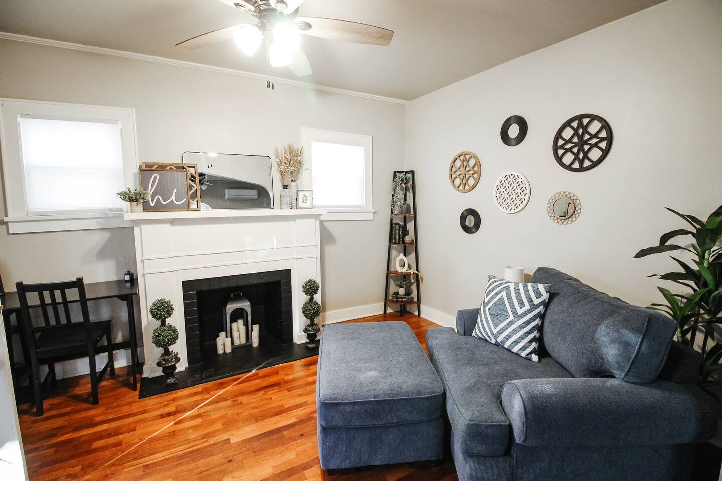 Welcome to your home away from home in the charming Delano neighborhood of Wichita! Whether you're a travel nurse, a contract worker, or simply seeking a cozy place to stay, our 1-bedroom retreat is designed with your comfort in mind. BEDROOM: - Queen Bed - Closet - TV - Ceiling Fan - Sound Machine - Window Unit KITCHEN: Prepare your favorite meals in the fully equipped kitchen, complete with all the essentials you need to cook and dine in style. LAUNDRY: Our property features on-site laundry, ensuring your stay is as convenient as possible. LOCATION: Nestled in the historic Delano neighborhood, you're in the heart of Wichita's vibrant culture and close to local amenities. Delano offers a mix of local shops, restaurants, and parks. Proximity to downtown Wichita means you're just a short drive away from even more dining and entertainment options. PLEASE NOTE: -Guests are not allowed to make a reservation in their city of residence. Guests with a 316 area phone number will be required to submit their drivers license upon approval. If there is a local address on the drivers license, the booking will be cancelled. No exceptions. -We only accept bookings from individuals aged 25 and older. Bookings made by anyone under the age of 25 will not be accepted. We can't wait to host you!