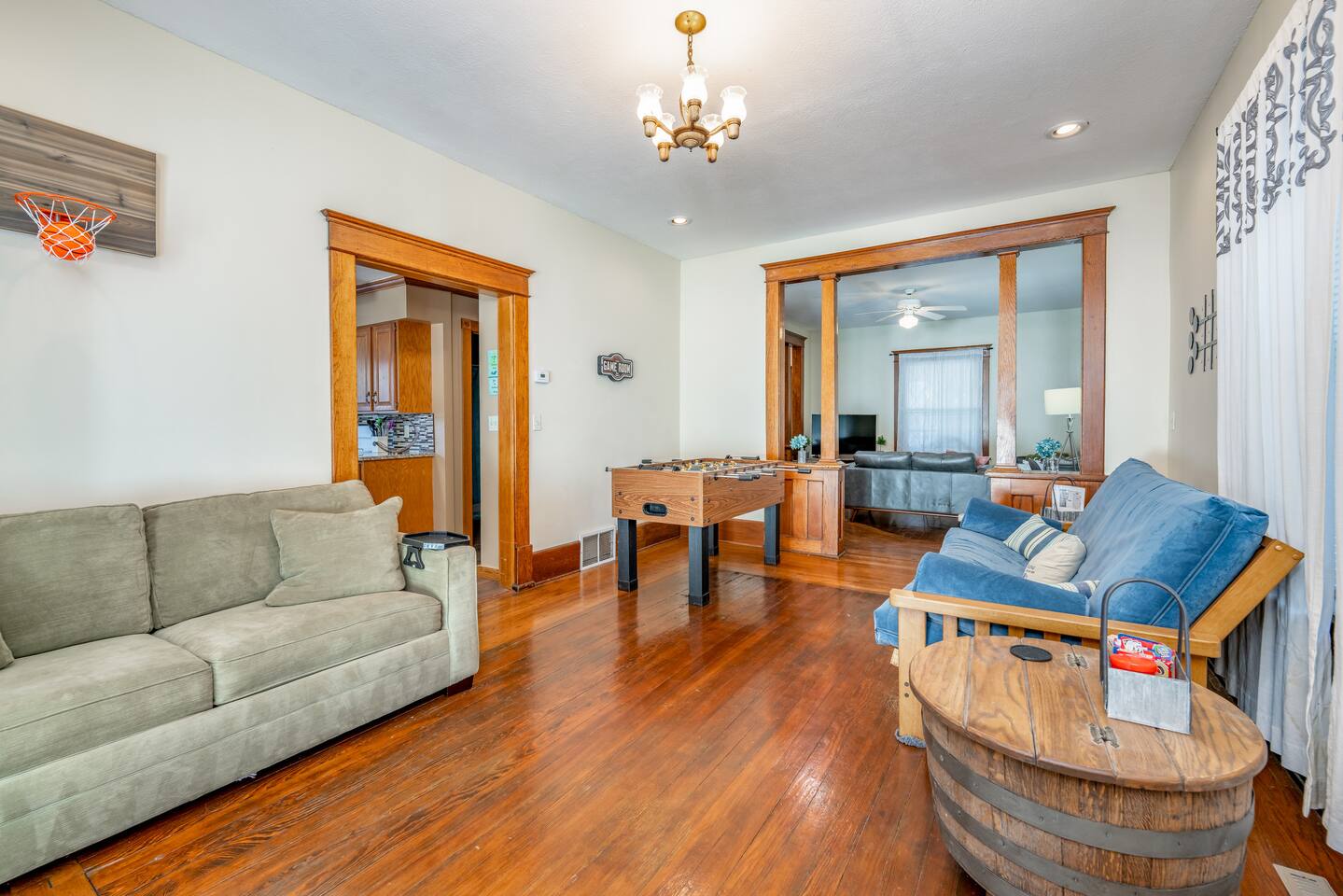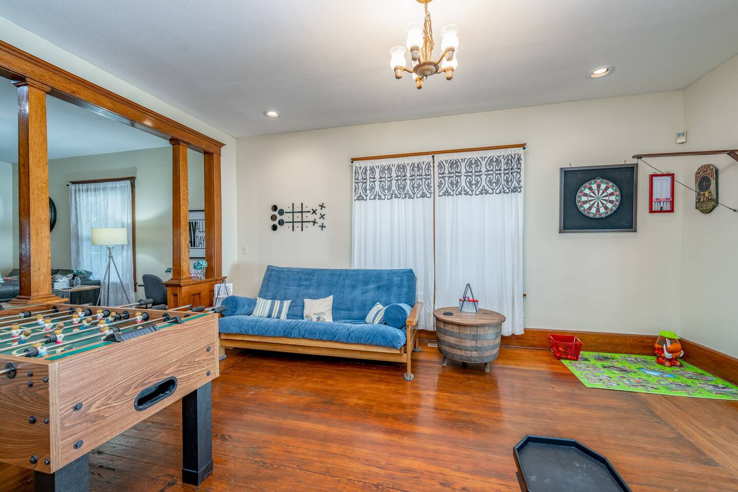 Clifton Square - 3 Min Wesley Hospital - 4 Min Downtown Wichita - 5 Min The Wave - 5 Min Intrust Bank Arena - 5 Min Wichita State University - 7 Min St. Joe Hospital - 7 Min St. Francis Hospital - 7 Min Riverfront Stadium - 8 Min Airport - 10 Min Mark Arts - 11 Min The entire home is yours to enjoy with all the comforts of home provided. Enter the home through the large covered wrap around porch. The perfect place to enjoy a cup of coffee in the morning! Bedrooms: All three beds are on the second level of the home, you must climb a flight of stairs to access them. They're equipped with comfortable mattresses, cozy comforters, soft sheets, and plenty of pillows to customize your comfort. Each bedroom includes closets and hangers so you can unpack during your stay. *Pack n Play available in the primary bedroom Kitchen & Laundry: The kitchen is complete with pots, pans, dishes, silverware, coffee maker, dishwasher and oven with electric range. We always make sure there is coffee, tea and condiments for them stocked for your convenience. If you find yourself needing to do a load of laundry, have no fear! We’ve provided a washer and dryer located just off the kitchen. Living Area: There is a smart TV with Roku access. We have also provided games to play and books to read during your stay! With a foosball table, hook & ring, and darts, this is the perfect space to gather with family and friends! All smart TV’s allow you to sign into any streaming services that you have access to at home! Just sign in with your current TV provider or username and password and you are ready to watch your favorite shows, sports and movies! Cable service is not provided. Bathrooms: We have two bathrooms fully stocked for your convenience. Shampoo, Conditioner and Shower gel will be found in a dispenser in the showers. We’ve provided plush bath towels, hand towels and washcloths. Outdoors: Off the living room there's a sunroom leading to a fenced in backyard and an underground pool waiting for you to enjoy. Please note the pool is NOT heated and is only available during summer months. In the sunroom, there is a home gym with everything you need! A treadmill, elliptical, stationary bike, dumbbells, yoga mats, and more are just what you need to get a workout in on the road. PLEASE NOTE: -Guests are not allowed to make a reservation in their city of residence. Guests with a 316 area phone number will be required to submit their drivers license upon approval. If there is a local address on the drivers license, the booking will be cancelled. No exceptions. -We only accept bookings from individuals aged 25 and older. Bookings made by anyone under the age of 25 will not be accepted.