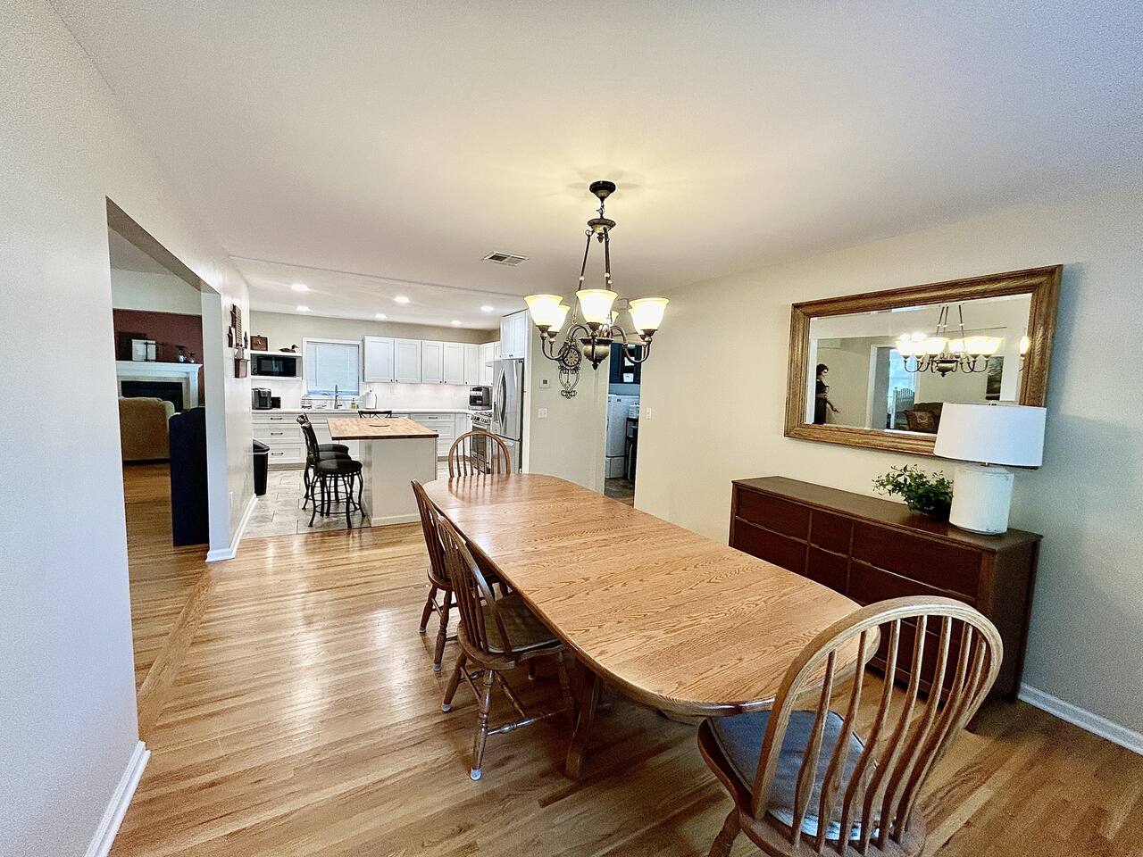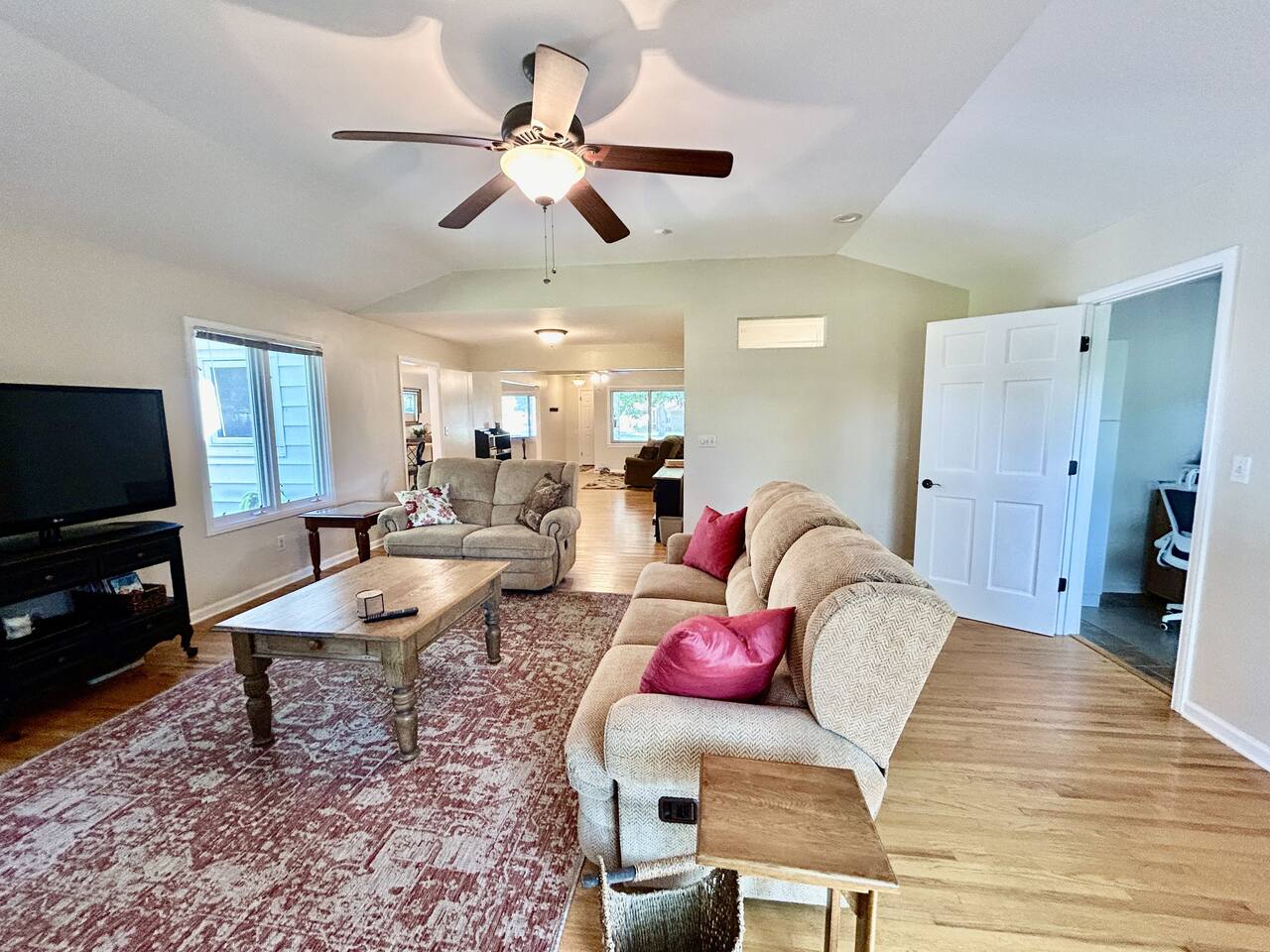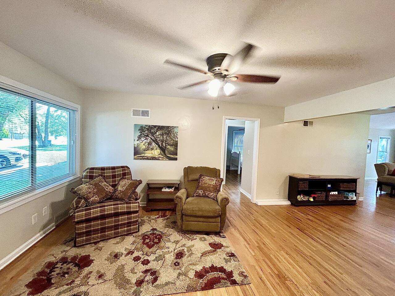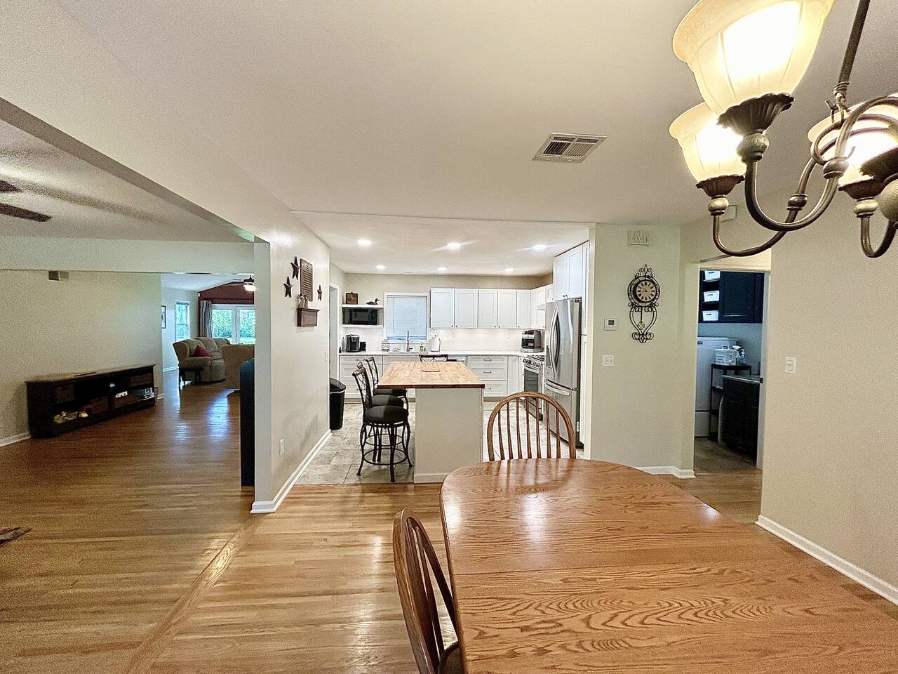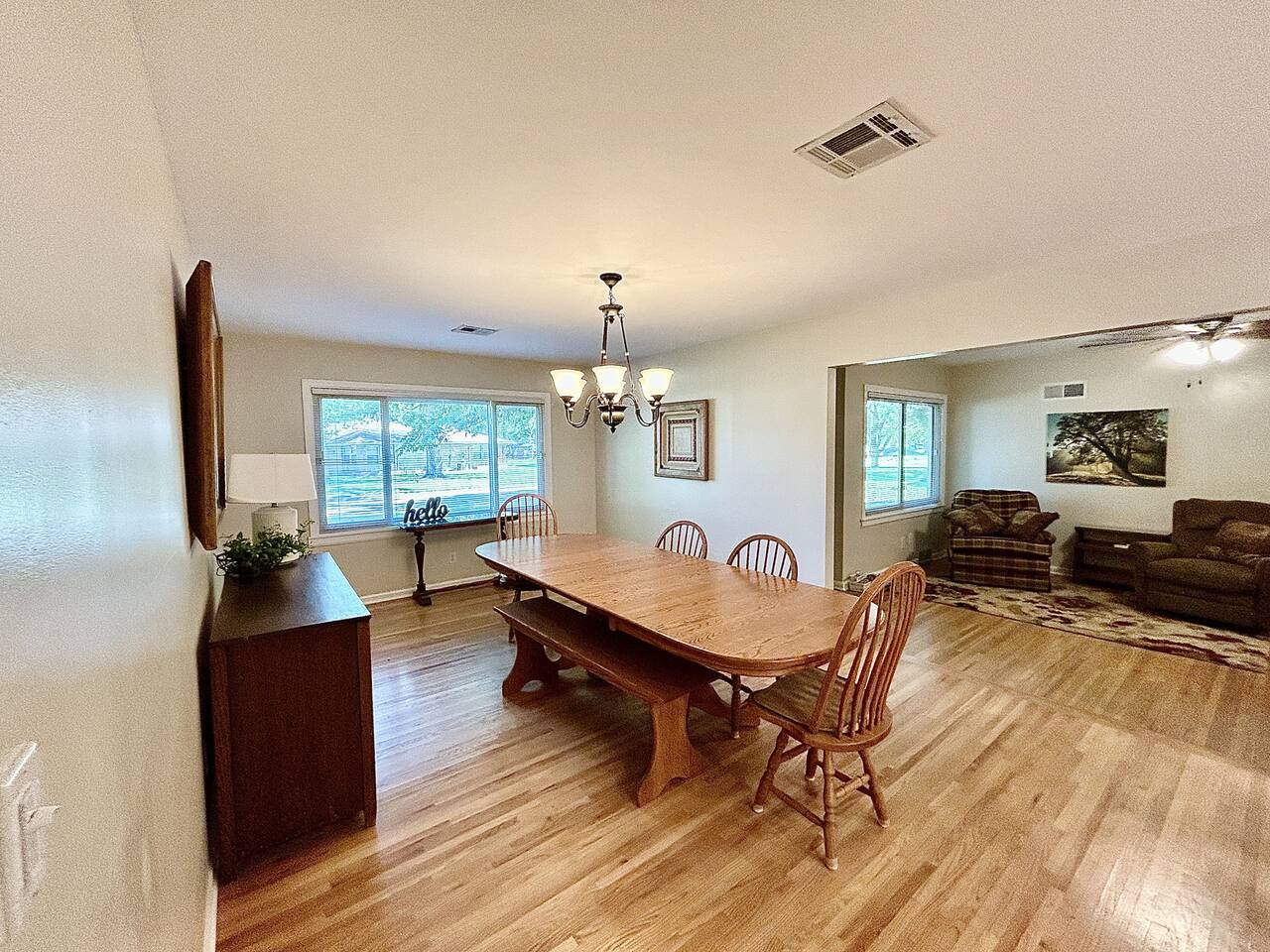 This sprawling 3-bedroom, 2-bathroom home seamlessly blends modern upgrades with generous gathering space. Recently renovated and fully equipped, it offers exceptional comfort and convenience for families, groups, or extended stays. With minimal entry steps and a single-story layout, accessing the home is effortless. Kitchen The centerpiece of this home is the newly renovated kitchen, boasting modern appliances, stylish countertops, and ample cabinet space. It includes a stainless steel refrigerator, gas stove, oven, microwave, and dishwasher. With everything you need on hand, meal preparation is effortless and enjoyable. Dining Room The spacious dining room is ideal for group meals, featuring a comfortable table that seats six—perfect for family dinners. Its open layout ensures easy access to both the kitchen and living room, making dining and entertaining a breeze. Living Room The living room is crafted for ultimate relaxation with cozy reclining sofas. Ideal for movie nights or peaceful evenings. The space fosters a warm and inviting atmosphere for everyone to come together. Natural light from large windows offers a delightful view of the backyard—perfect for watching kids or pets play. Master Bedroom - Queen Size Bed - En Suite Bathroom - TV - Ceiling Fan - Walk in Closet Master Bathroom - Soaker Tub - Walk in Shower - Double Vanity Bedroom 2 - Full Bed - TV - Ceiling Fan - Closet Bedroom 3 - 2 Twin Beds - Ceiling Fan - Closet Bathroom 2 - Tub/Shower Combo PLEASE NOTE: -Guests are not allowed to make a reservation in their city of residence. Guests with a 316 area phone number will be required to submit their drivers license upon approval. If there is a local address on the drivers license, the booking will be cancelled. No exceptions. -We only accept bookings from individuals aged 25 and older. Bookings made by anyone under the age of 25 will not be accepted. We can't wait to host you!