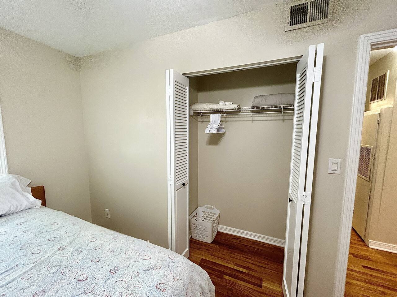 There is an air mattress in the entryway closet.