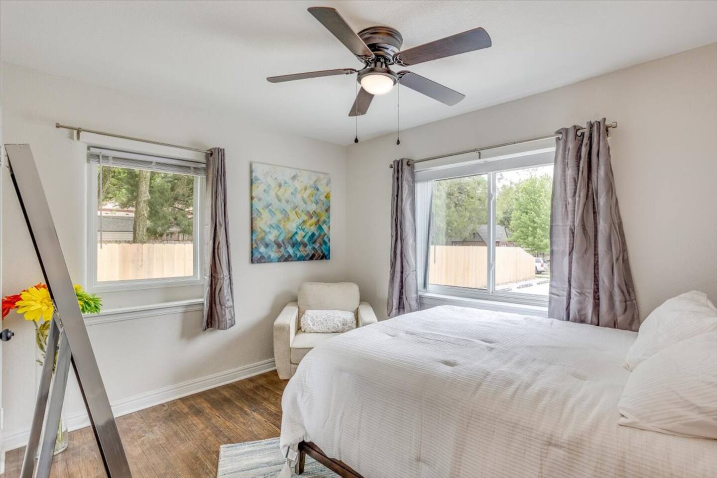 Welcome home to a cozy spot nestled in the heart of Wichita. Not only is it completely remodeled with modern amenities, we offer pickle ball court, corn hole, free bike rentals, grill with outdoor dining area, and an experience making it the perfect place to call home during your stay. Conveniently located in a sought-after neighborhood, just minutes away from hospitals, parks, golf courses, shopping, and dining options. With easy access to major highways, commuting to downtown Wichita or surrounding areas is a breeze. As you enter, you'll be greeted by a bright and tastefully decorated living area, designed with your comfort in mind. Relax on the comfortable sofa and catch up on your favorite shows on the flat-screen TV. The kitchen is fully equipped with all the appliances and cookware you need to prepare a delicious home-cooked meal. The dining area is located adjacent to the kitchen, providing a convenient and comfortable space to enjoy your meals. BEDROOM 1: - Queen Bed - Full Length Mirror - Ceiling Fan - Cozy Chair - Closet - Curtains BEDROOM 2: - Queen Bed - Ceiling Fan - Closet - Curtains BATHROOM: - Tub/Shower Combo - Shampoo & Conditioner - Hand Soap - Towels Laundry is available on site for your convenience. We have two community units located in the basement. PLEASE NOTE: -Guests are not allowed to make a reservation in their city of residence. Guests with a 316 area phone number will be required to submit their drivers license upon approval. If there is a local address on the drivers license, the booking will be cancelled. No exceptions. -We only accept bookings from individuals aged 25 and older. Bookings made by anyone under the age of 25 will not be accepted. We can't wait to host you!