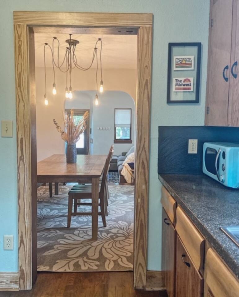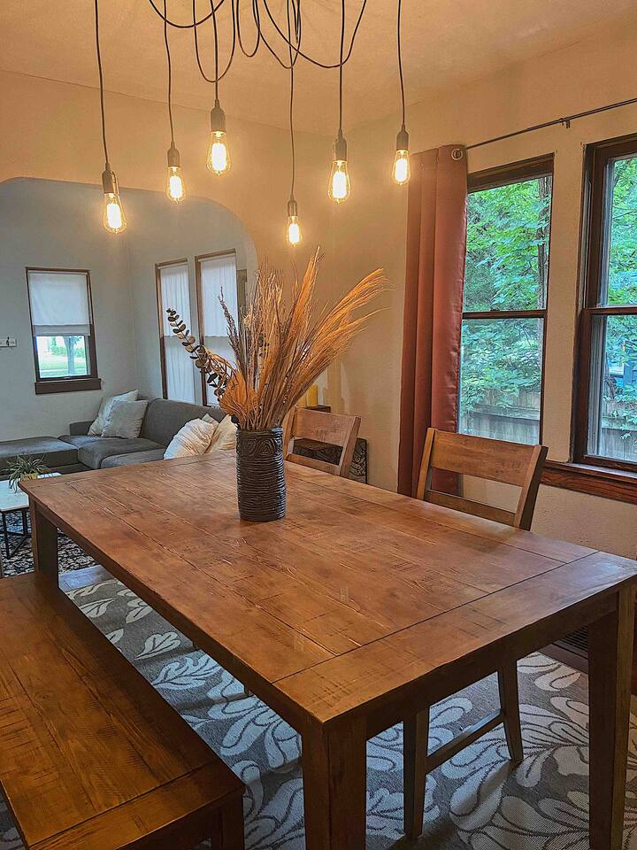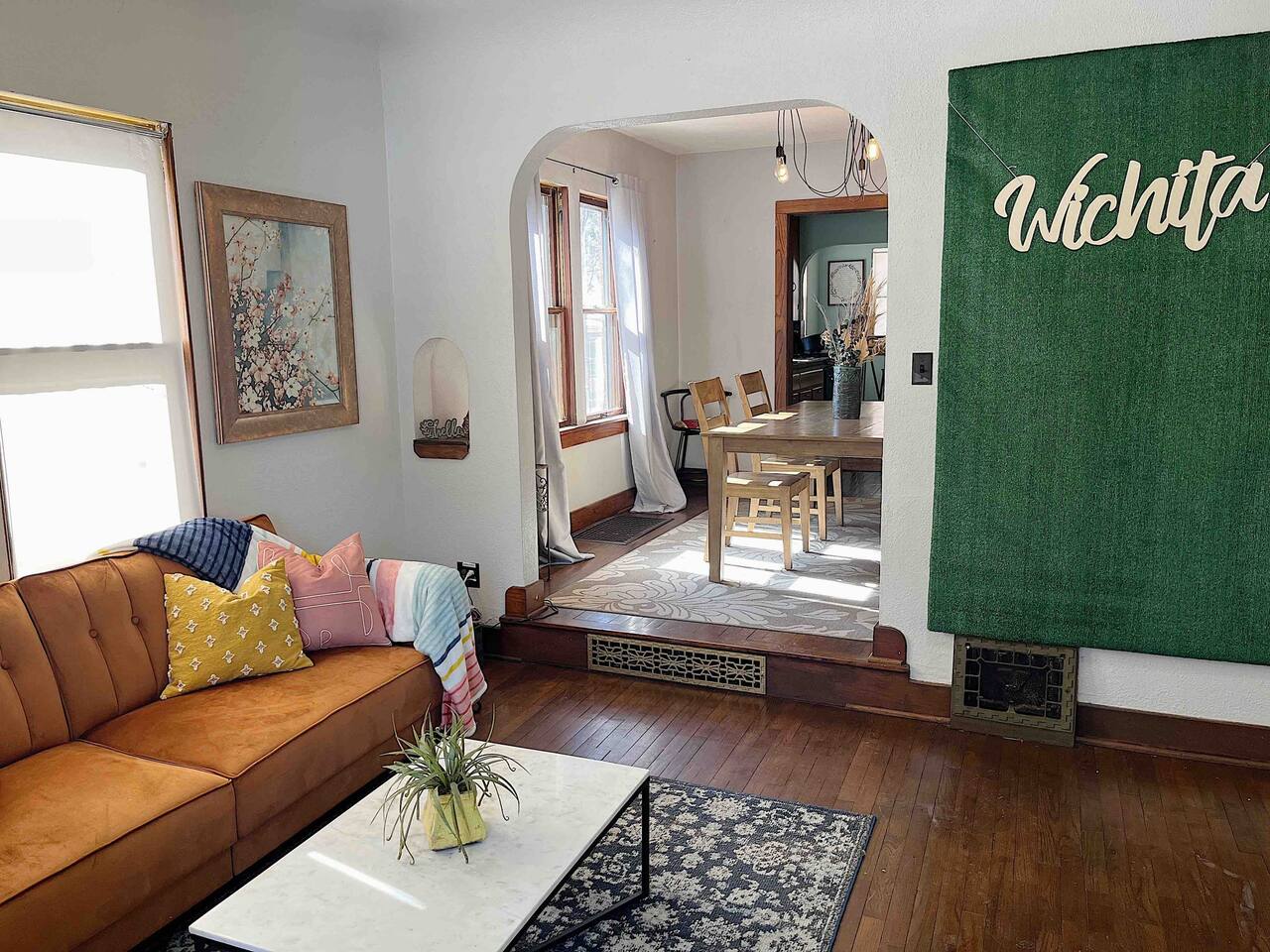 This home has charming features such as all original hardwood floors, curved walls, original hardware on doors, and more! This home is cozy and unique. The main floor includes; living room (with sofa bed), dining room, kitchen, bathroom, and one bedroom with a full size bed. On the second level (8 steps up) There is a single bedroom that includes a Queen size bed! From the main floor towards the back of the house (down a few steps) there is a door to the fully fenced back yard as well as a entry way to an additional recreational room with the washer and dryer! PLEASE NOTE: -Guests are not allowed to make a reservation in their city of residence. Guests with a 316 area phone number will be required to submit their drivers license upon approval. If there is a local address on the drivers license, the booking will be cancelled. No exceptions. -We only accept bookings from individuals aged 25 and older. Bookings made by anyone under the age of 25 will not be accepted. We can't wait to host you!