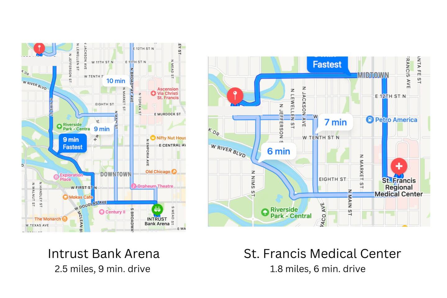 Charming castle-like home is full of character. This 1930's home has many original features with modern updates. Located in the center of desirable Riverside neighborhood, close to everything making it easy to plan your visit. The river, parks, and frisbee golf are just steps away. Local dining and coffee is available within walking distance in the neighborhood. Downtown Wichita - 7 Minutes The Wave - 7 Minutes St Francis Hospital - 4 Minutes Wesley Hospital - 10 Minutes